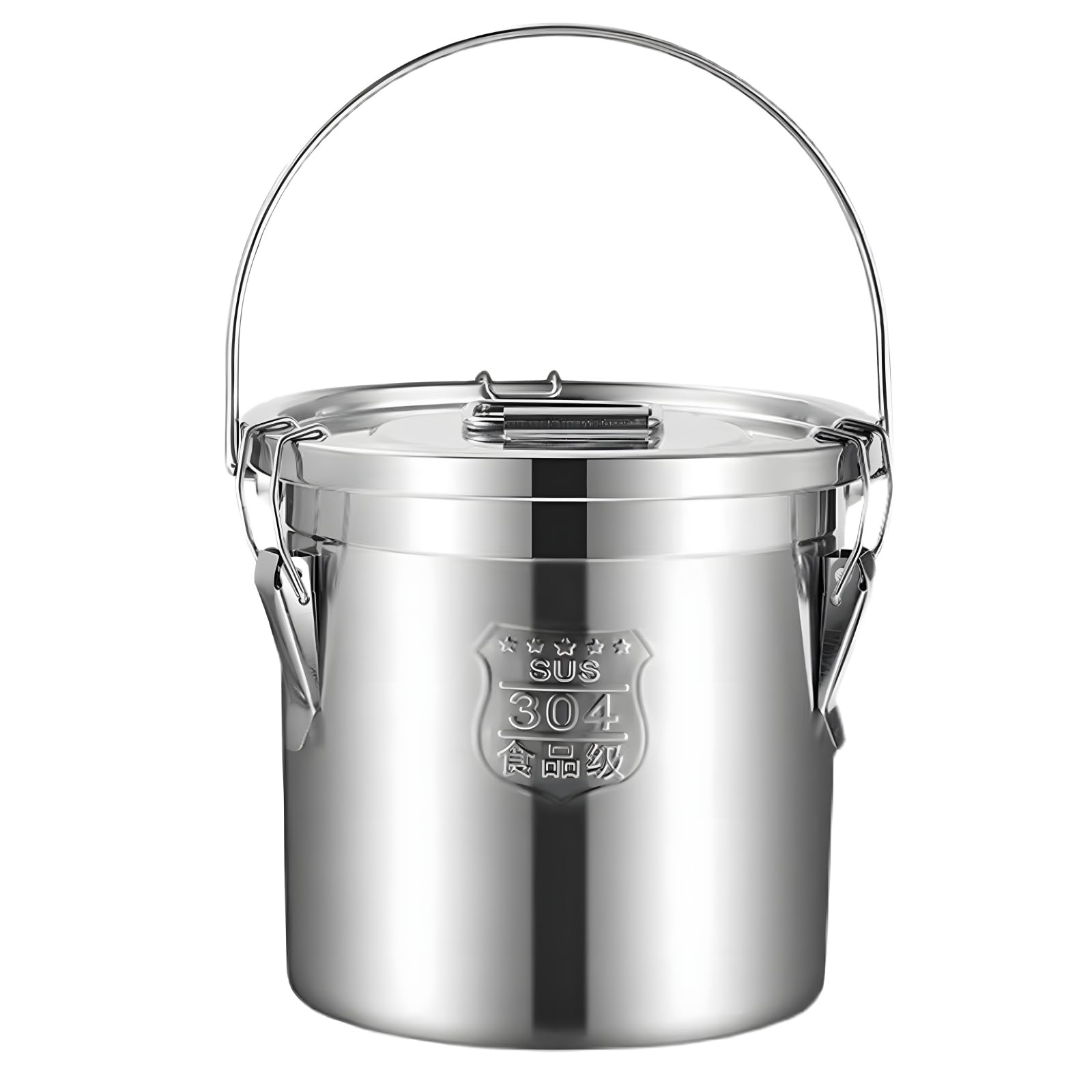DOUBLE SEALING PROTECTION: Steel container with lid steel container equipped with 3 strong sealing buckles firmly lock the bucket body and lid, the built in anti leakage sealing ring is highly sealed and effectively prevents the soup from leaking