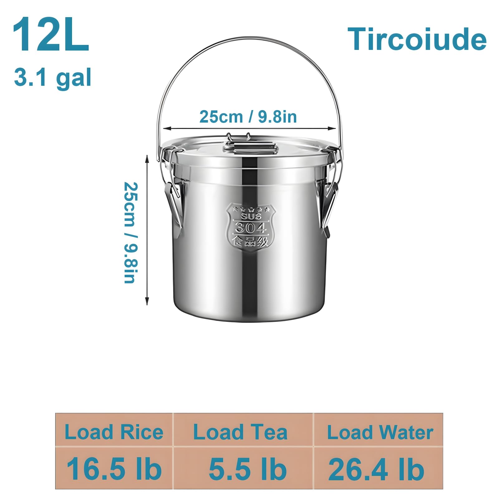 DURABILITY: Tircoiude food storage buckets with lids airtight has 304 stainless steel body with thickness 0.8mm, the handle is butt-welded and equipped with a silicone seal to ensure metal jerry cans firmness and durability