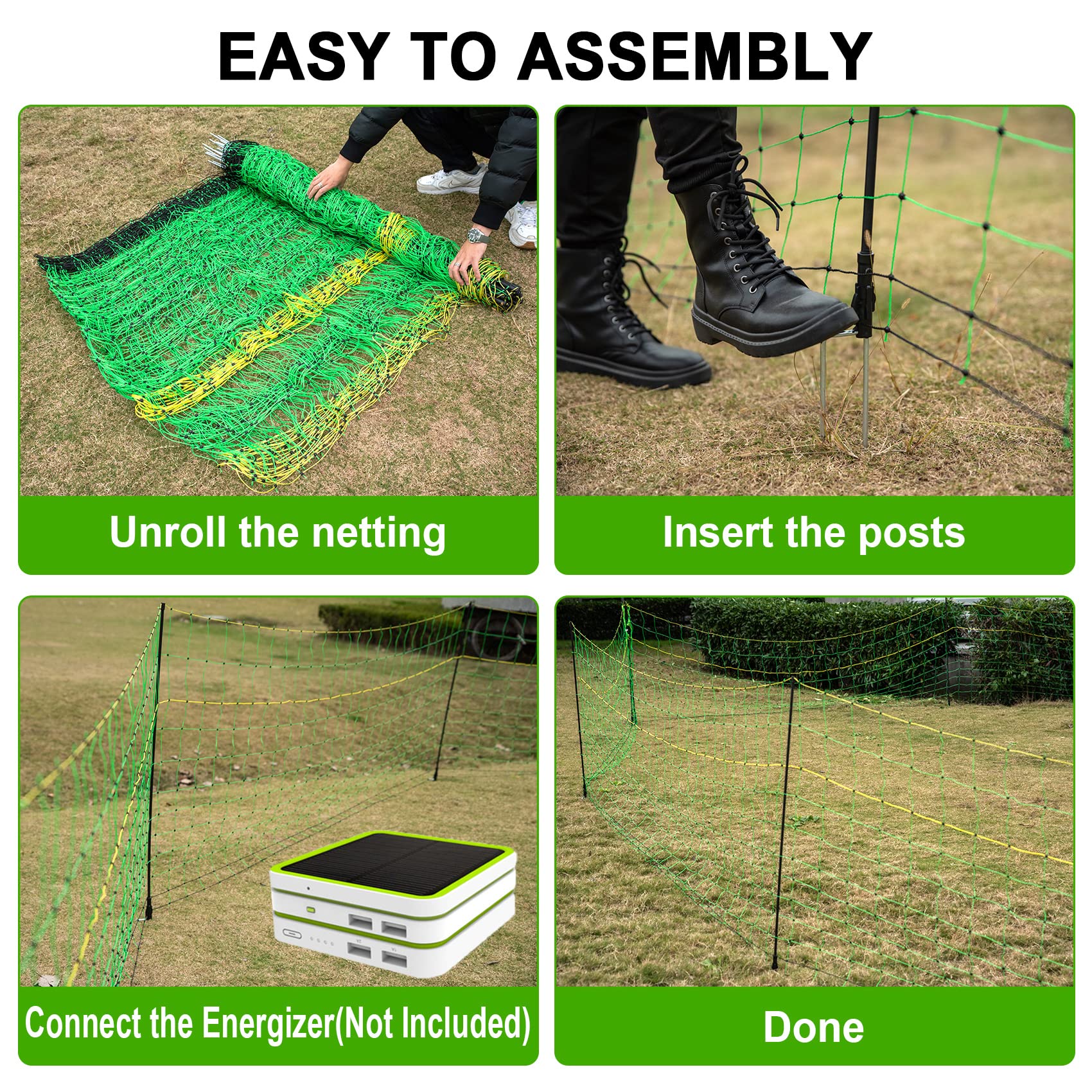 π Easy to Install: Get away from the worry about countless tangled wires and posts. Just unroll the netting fence, insert the posts into the ground with 12.5-13.1ft interval, and then power it up. It is lightweight enough to transport and convenient for rotating grazing.