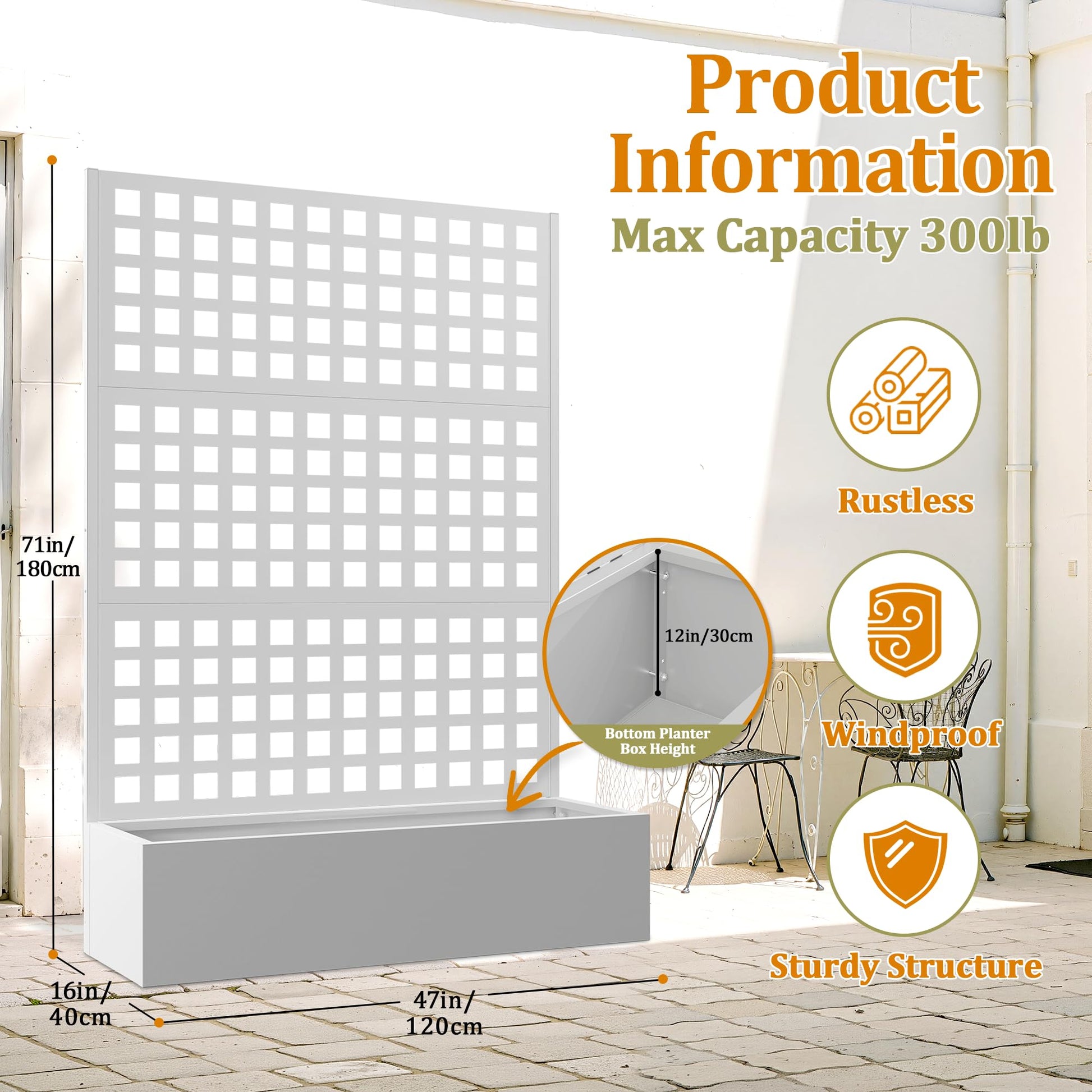 TOAOTBNBO Metal Planter Box with Trellis, Heavy-Duty Raised Garden Bed for Climbing Plants, Drainage Hole, Outdoor Planter Box with Privacy Screen,47''L×16''W×71''H