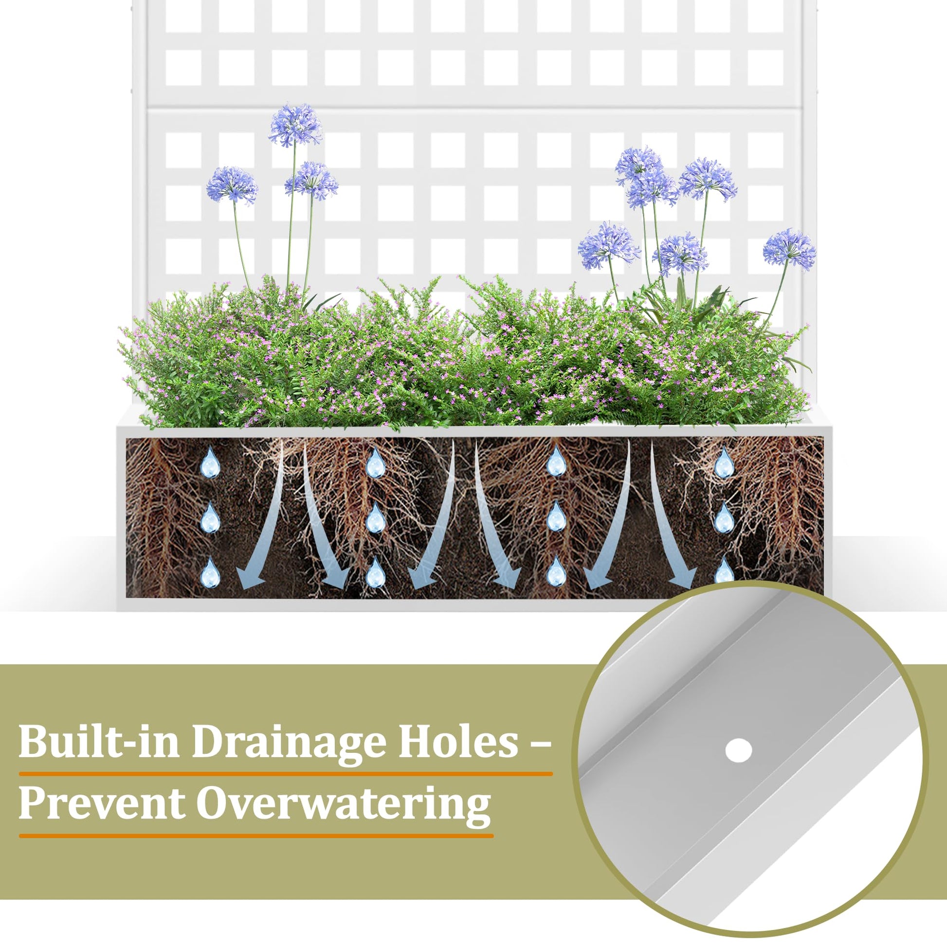 💧【Spacious and Efficient Planting Area】Enjoy abundant space in this metal planter box with trellis, ideal for vegetables, herbs, and climbing flowers. Drainage holes prevent waterlogging, making it a perfect garden raised bed for climbing plants. With its vertical structure, this metal planter with privacy screen allows you to grow upward, saving ground space. Plus, this metal planter box with trellis is great for small patios or urban gardens.