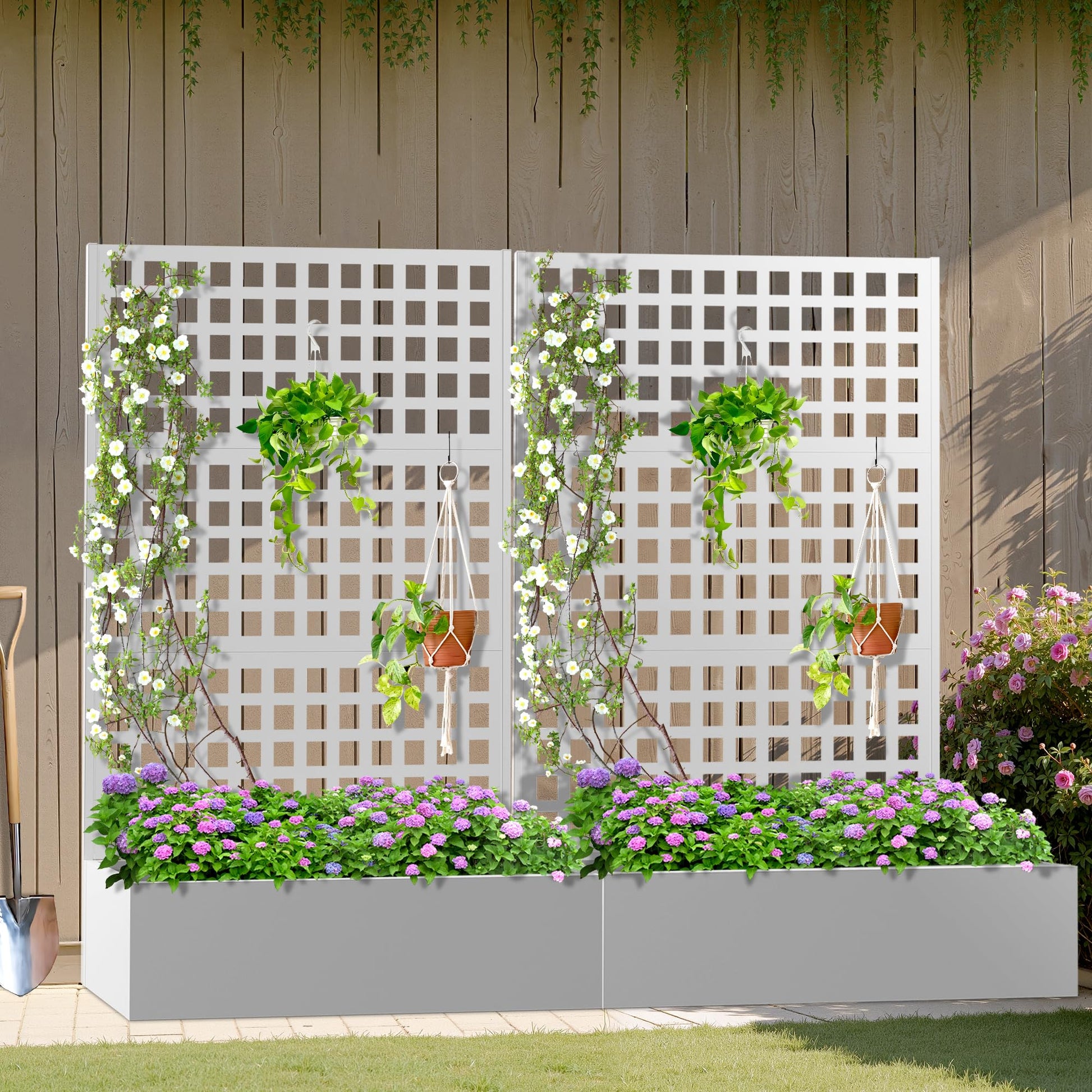 🌿【Durable Metal Planter Box for All-Season Gardening】This metal planter box is crafted from rust-resistant galvanized steel, ensuring durability and strength in all weather. Whether you’re growing tomatoes or roses, this garden raised bed for climbing plants offers reliable support. The integrated structure transforms your outdoor space into a stylish metal planter with privacy screen, and the sturdy frame makes this metal planter box with trellis a lasting garden feature.