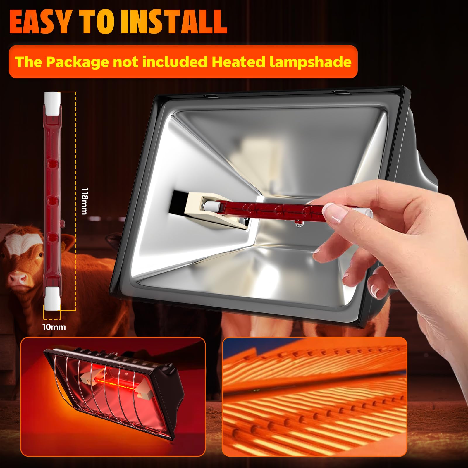 [Chicken Coop Heat Lamp bulb] This 175W R7S red heat light bulb Keep your pets comfortable ,Our chicken coop heat lamps are equipped with a temperature adjustment function,allowing you to easily adjust to the ideal temperature according to the needs of your pets or poultry, ensuring that they stay warm and comfortable even in the cold season,The light source generated by infrared rays will not have any impact on your chickens,allowing your chickens to sleep peacefully at night
