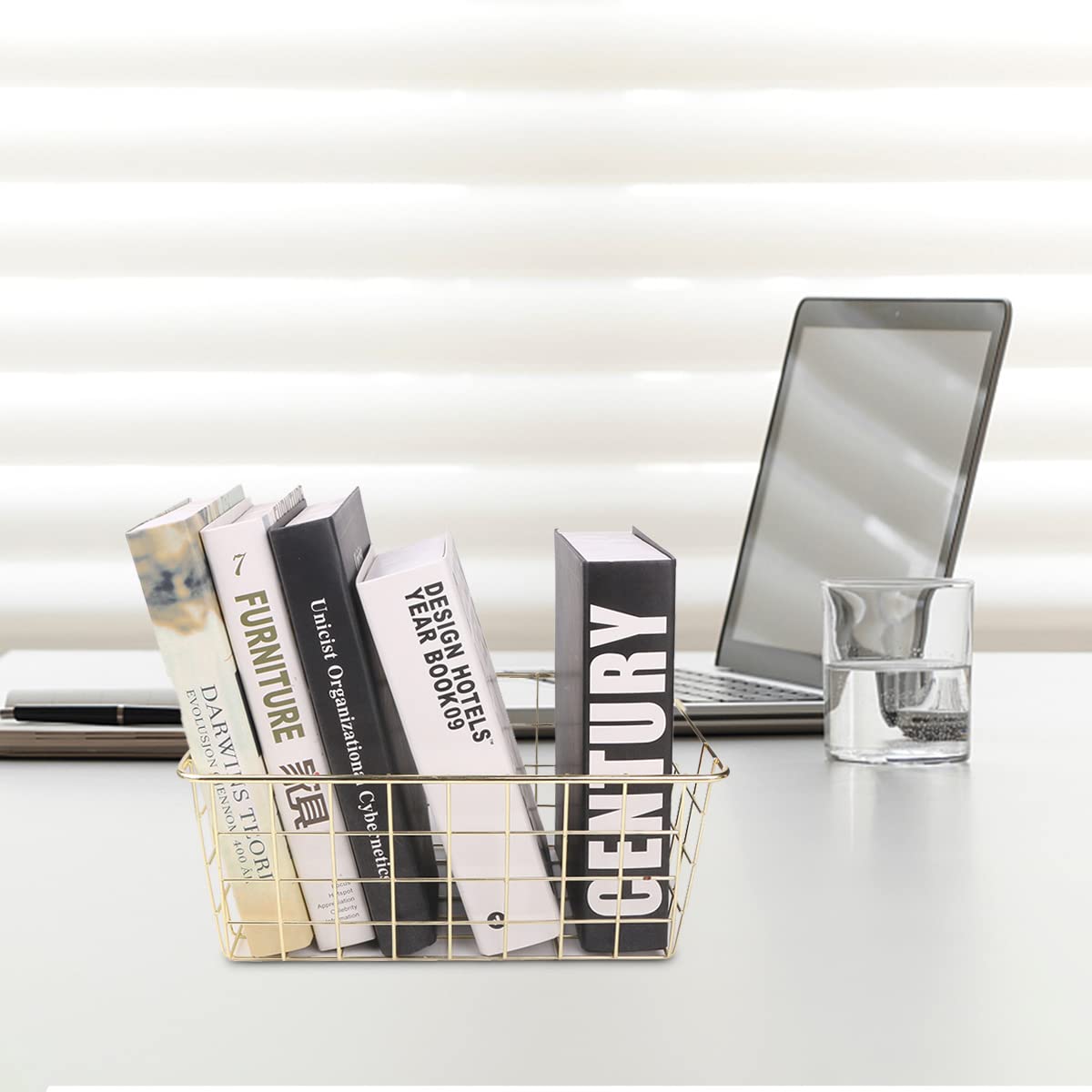 [Stylish Design and Enough Capacity] - 11” x 8.7” x 4.7”,This wire storage basket with built-in handles for portability, just grab and go. The side handles make it convenient to pull this tote off the shelf, out of cabinets or wherever you store them; The integrated handles make these perfect for upper shelves, you can use the handles to pull them down;The open wire spacing lets you see at-a-glance the item you want, not miss anything