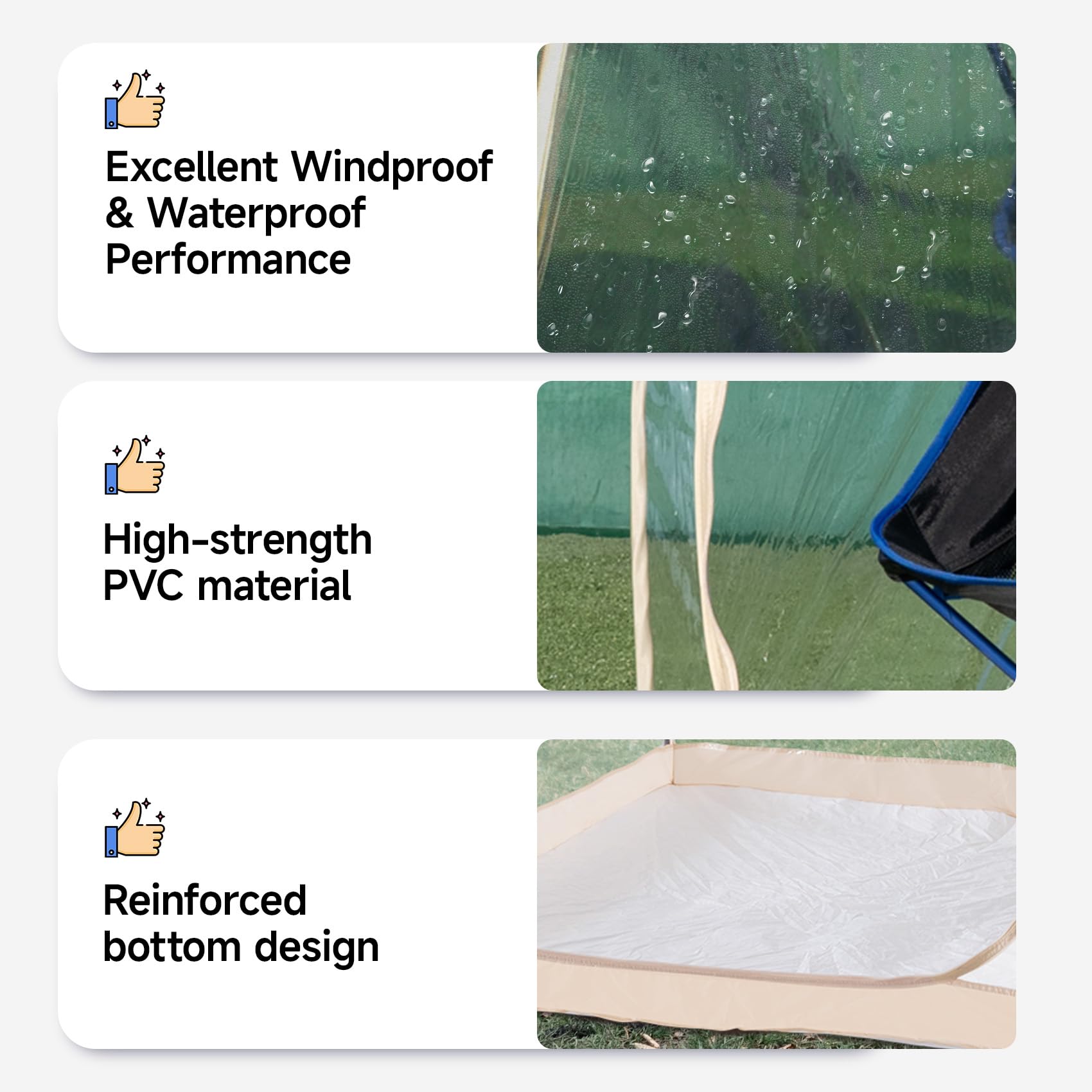 540° Super Clear View: Experience stunning clarity with the weatherproof 540-degree super clear view. The high-quality super transparency PVC material ensures exceptional visibility, allowing you to immerse yourself in every detail of the game or admire the scenic surroundings.