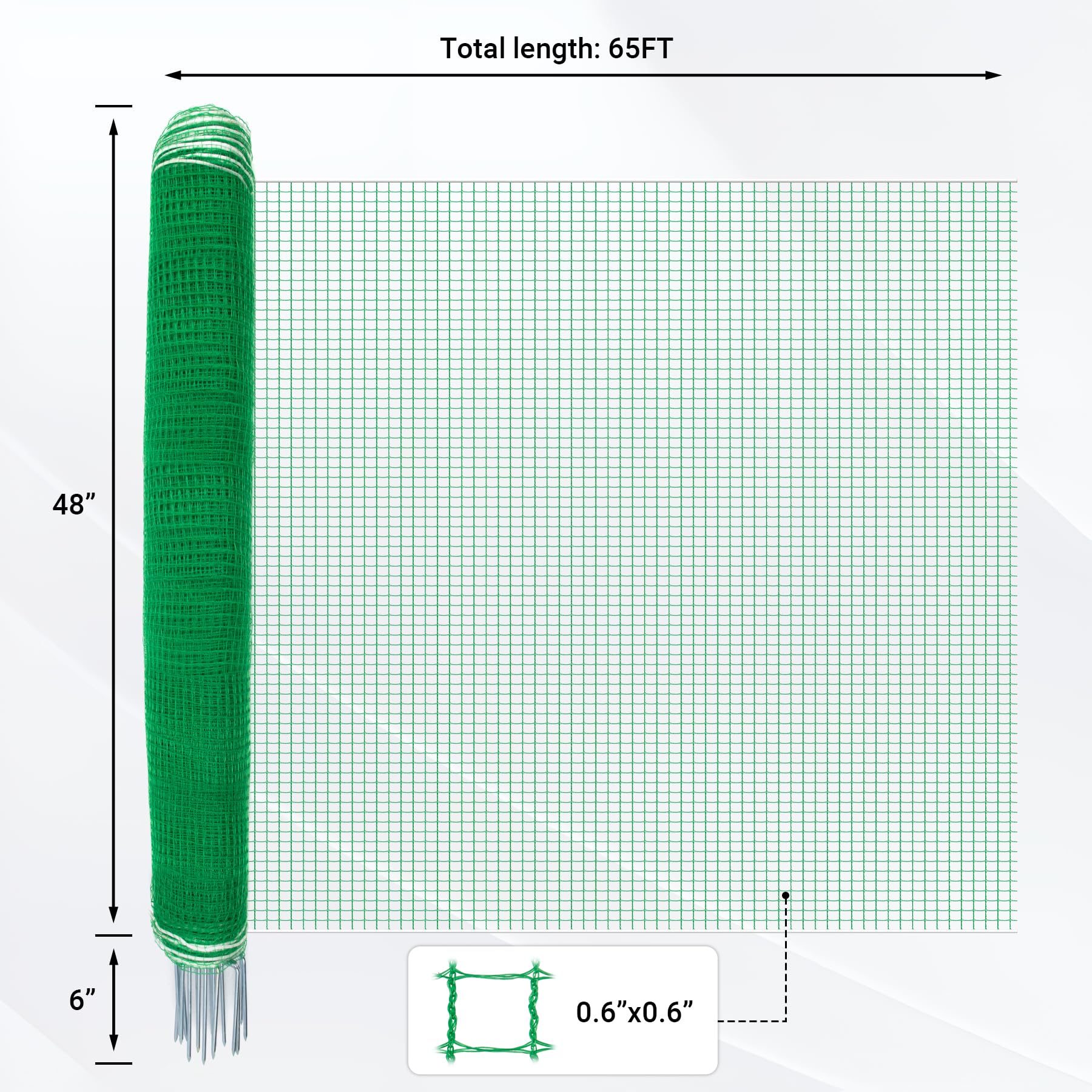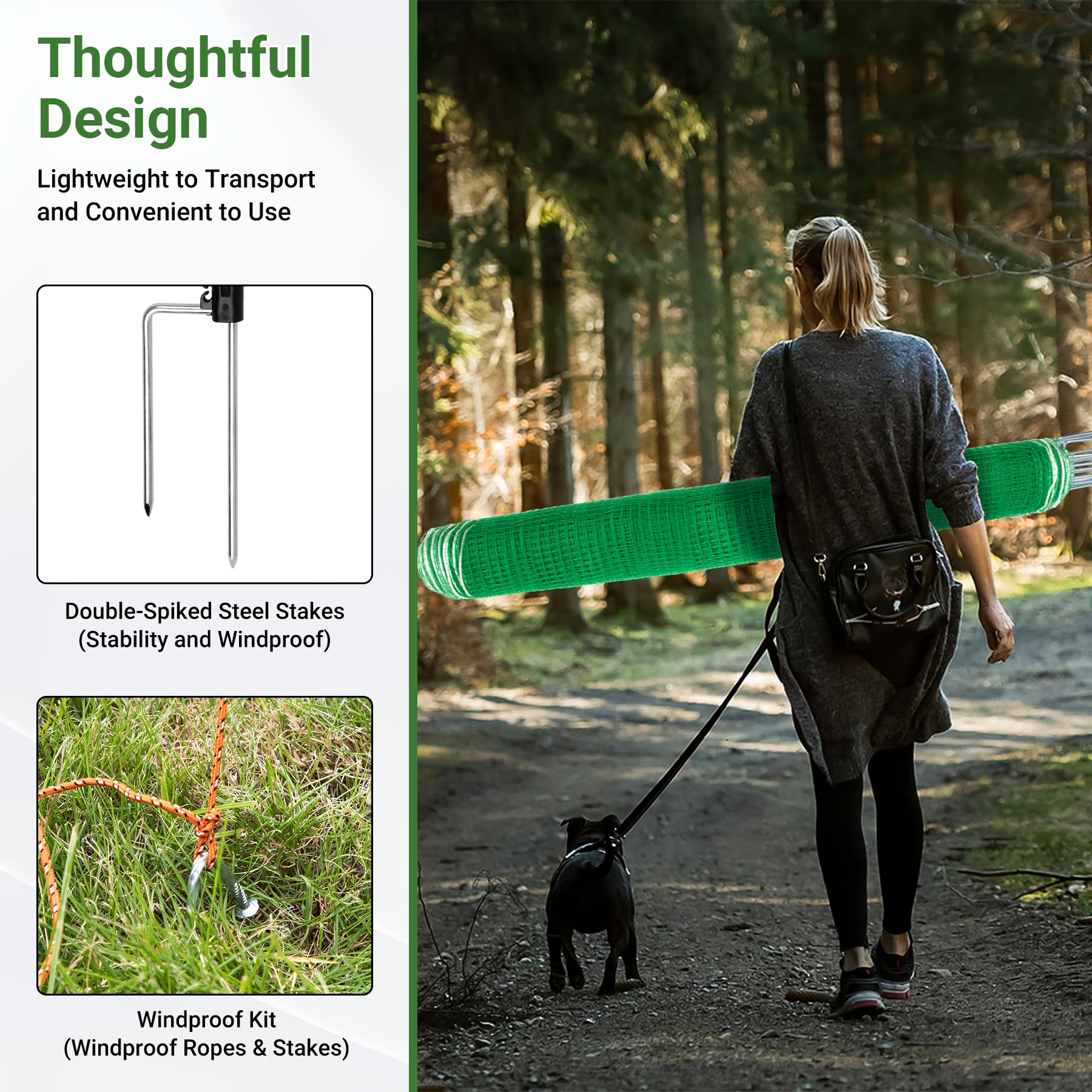 Premium Material: Our non-electric fence features high-strength PE wire mesh and 9 fiberglass posts with double-spiked steel stakes, which is robust and reliable to use