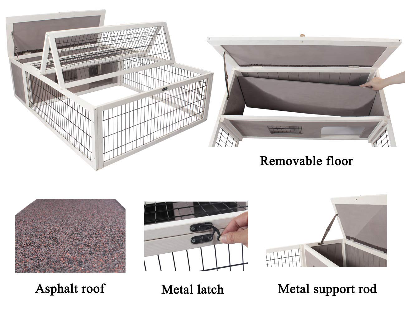This enclosure is worth the penny. You will get what you pay for.It's made of solid wood, and metal grate is strong. There is a removable bottom floor in the hut, NO bottom in the run