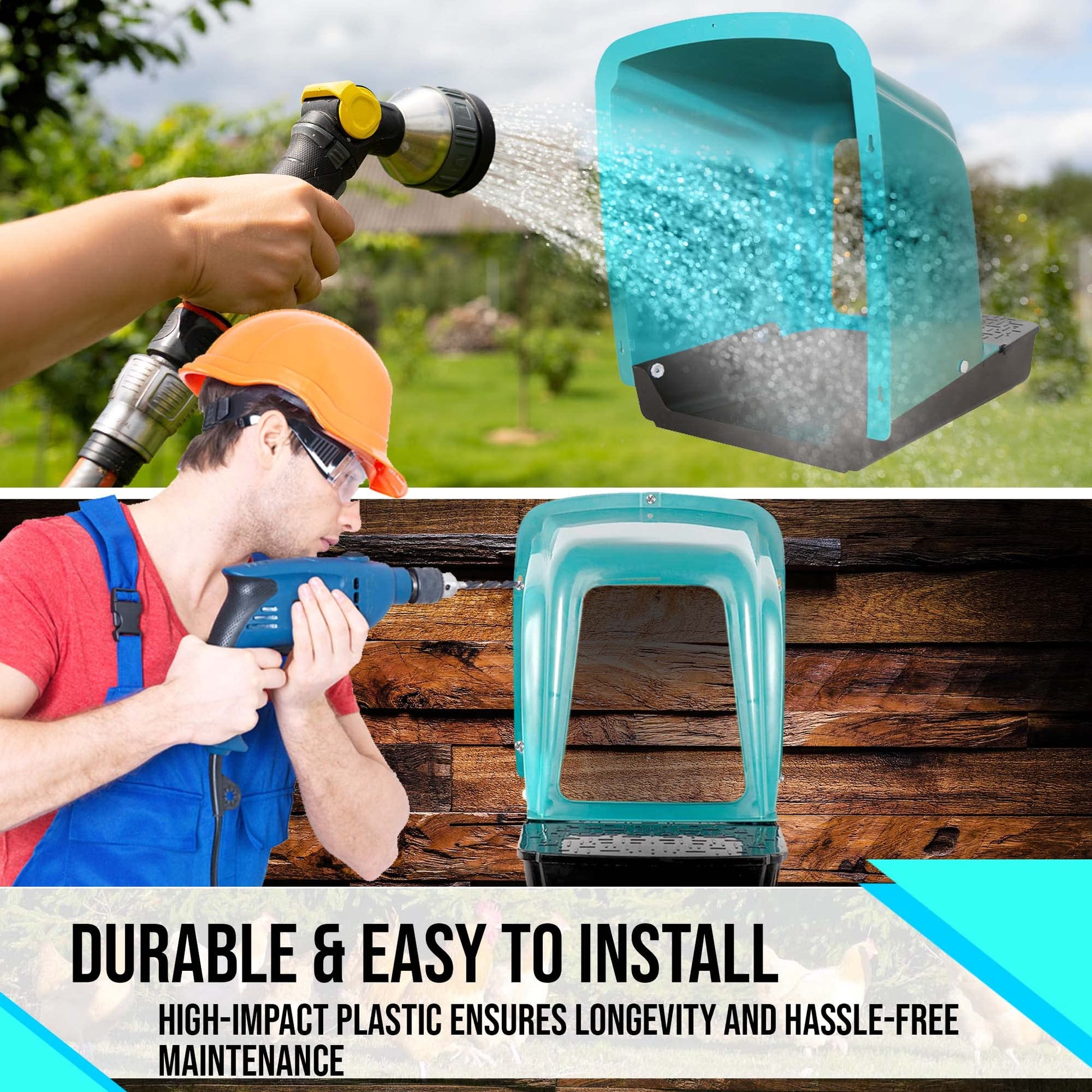 [Effortless Cleaning]: With our chicken nesting boxes, maintaining a clean and hygienic chicken cage for chickens has never been easier. The high-quality plastic box construction ensures durability and easy cleaning, allowing you to focus on the well-being of your hens rather than the upkeep of their home. Spend less time on maintenance and more time enjoying the benefits of your thriving chicken coup.
