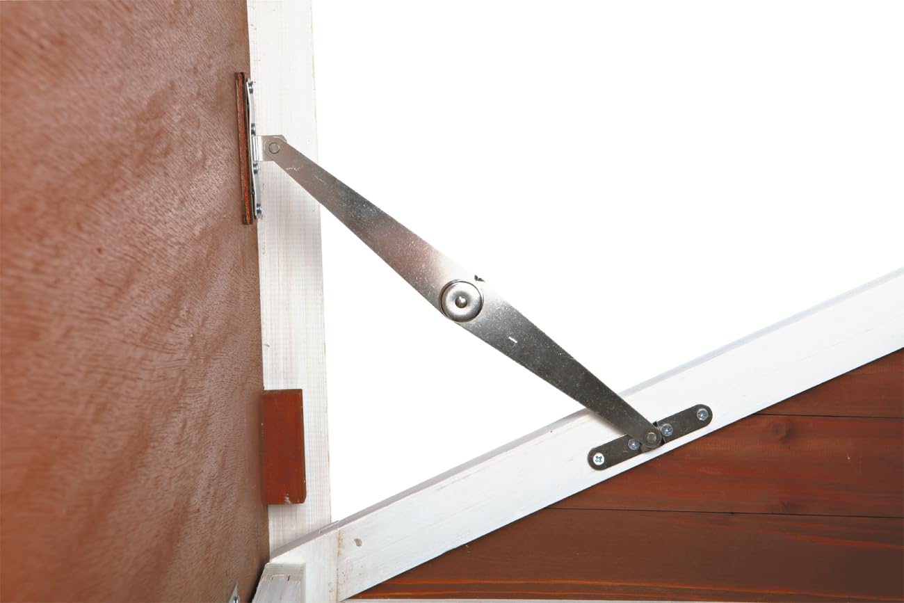 CONVENIENT ACCESS: Hinged roof with locking arms opens above the sleeping and nesting area for easy egg collection – plus, a pull-out plastic tub makes cleaning quick and hassle-free