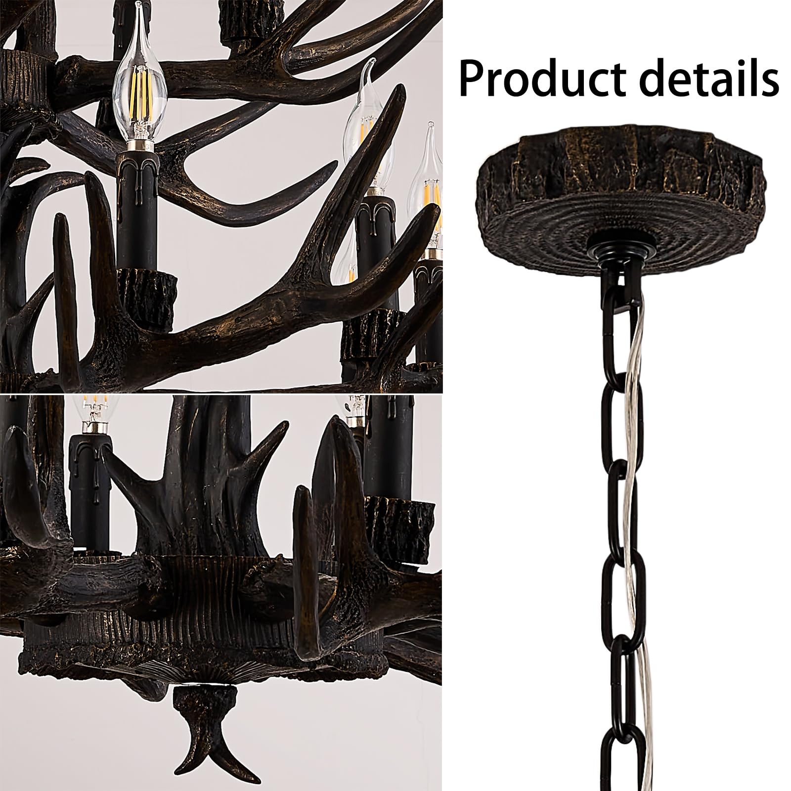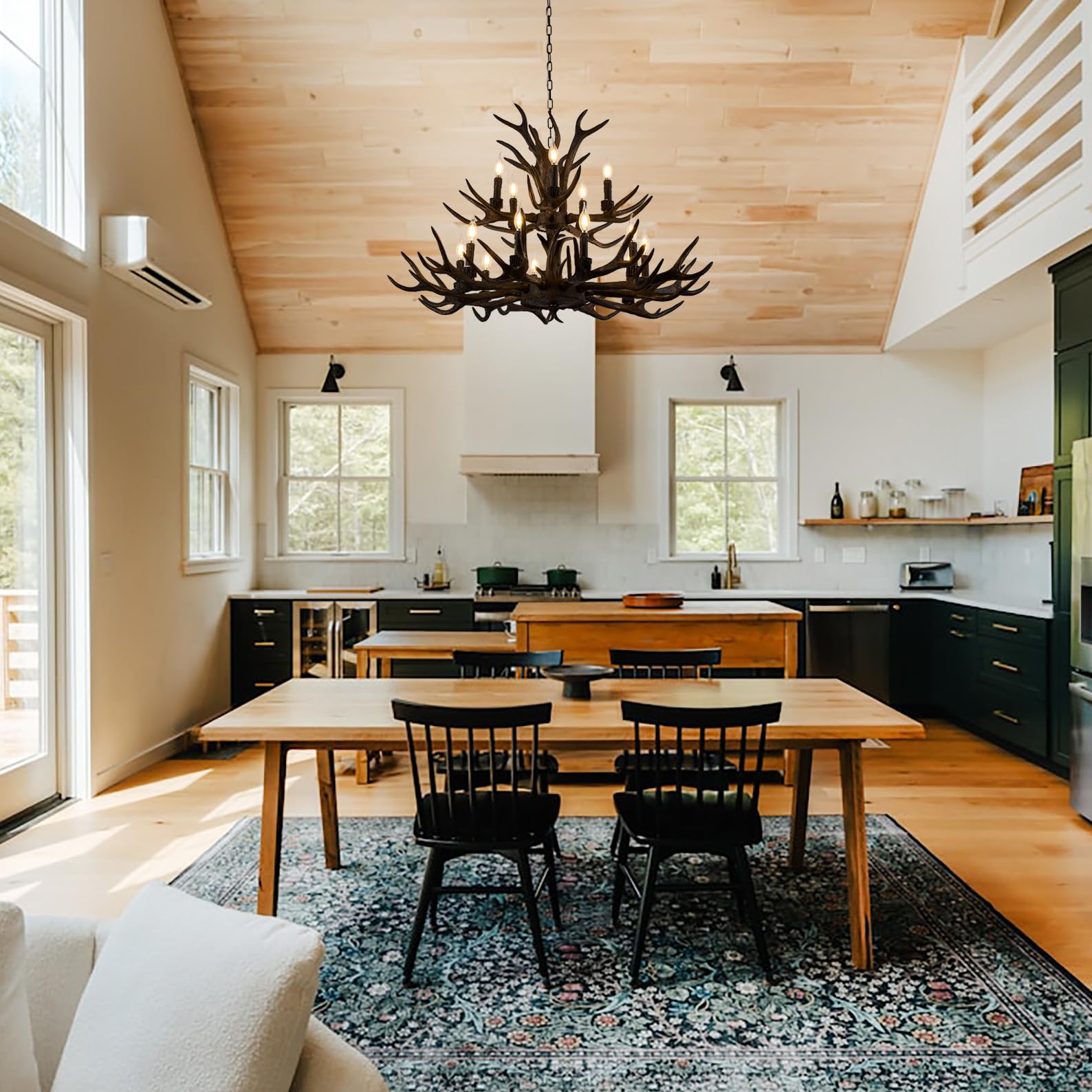 Ideal for Rustic & Farmhouse Interiors - The rustic antler design makes this chandelier a perfect fit for farmhouse, cabin, lodge, or mountain - styled spaces. It seamlessly elevates the look of living rooms, dining rooms, kitchens, foyers, and more, adding character and warmth.