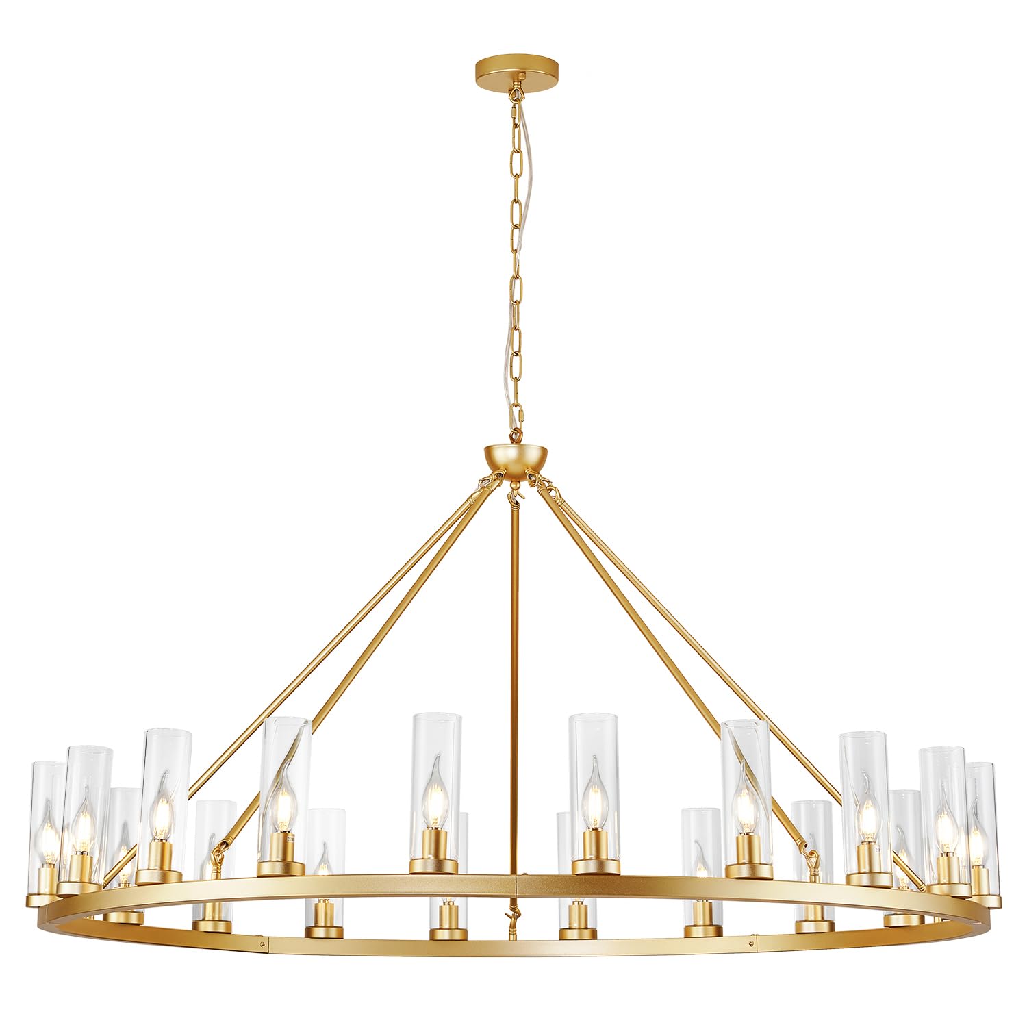 Uboxin D52 Large Gold Wagon Wheel Chandelier 20 Light with Clean Glass, Farmhouse Vintage Industrial Country Style Round Pendant Light Fixture for Stair Living Room(52in-20 Light)