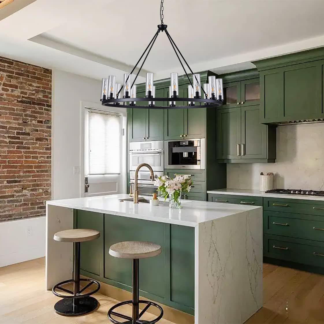 Exquisitely crafted by skilled artisans, the glass shade chandelier showcases meticulous attention to detail in every aspect of its design. The delicate glass shades are carefully shaped through precise mechanical cutting techniques, combined with the artistry of human hands. The Wagon Wheel Chandelier features a sturdy and secure construction, ensuring 360° illumination to envelop your space with a cozy and inviting ambiance, making it the perfect addition to create a warm and welcoming home atmosphere.