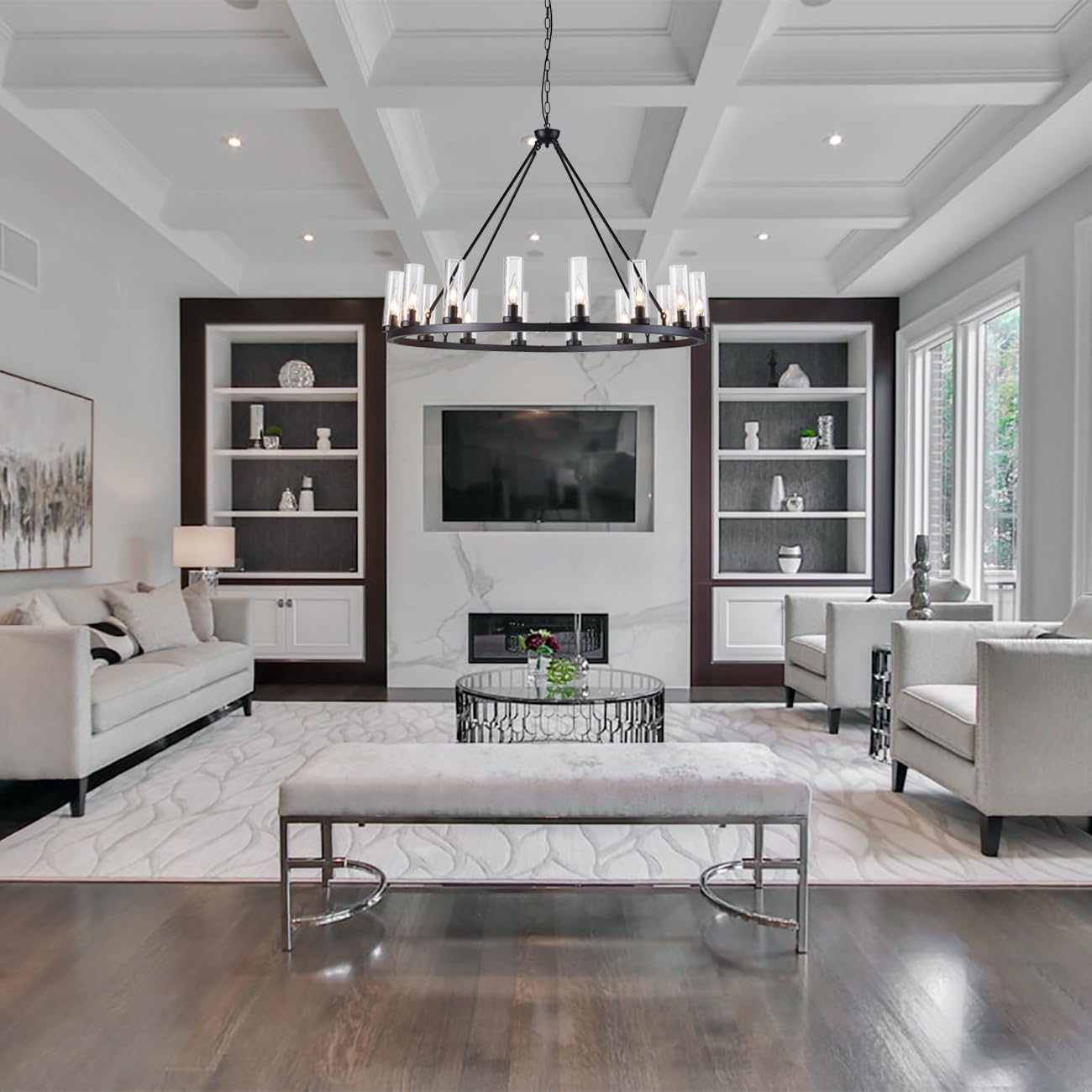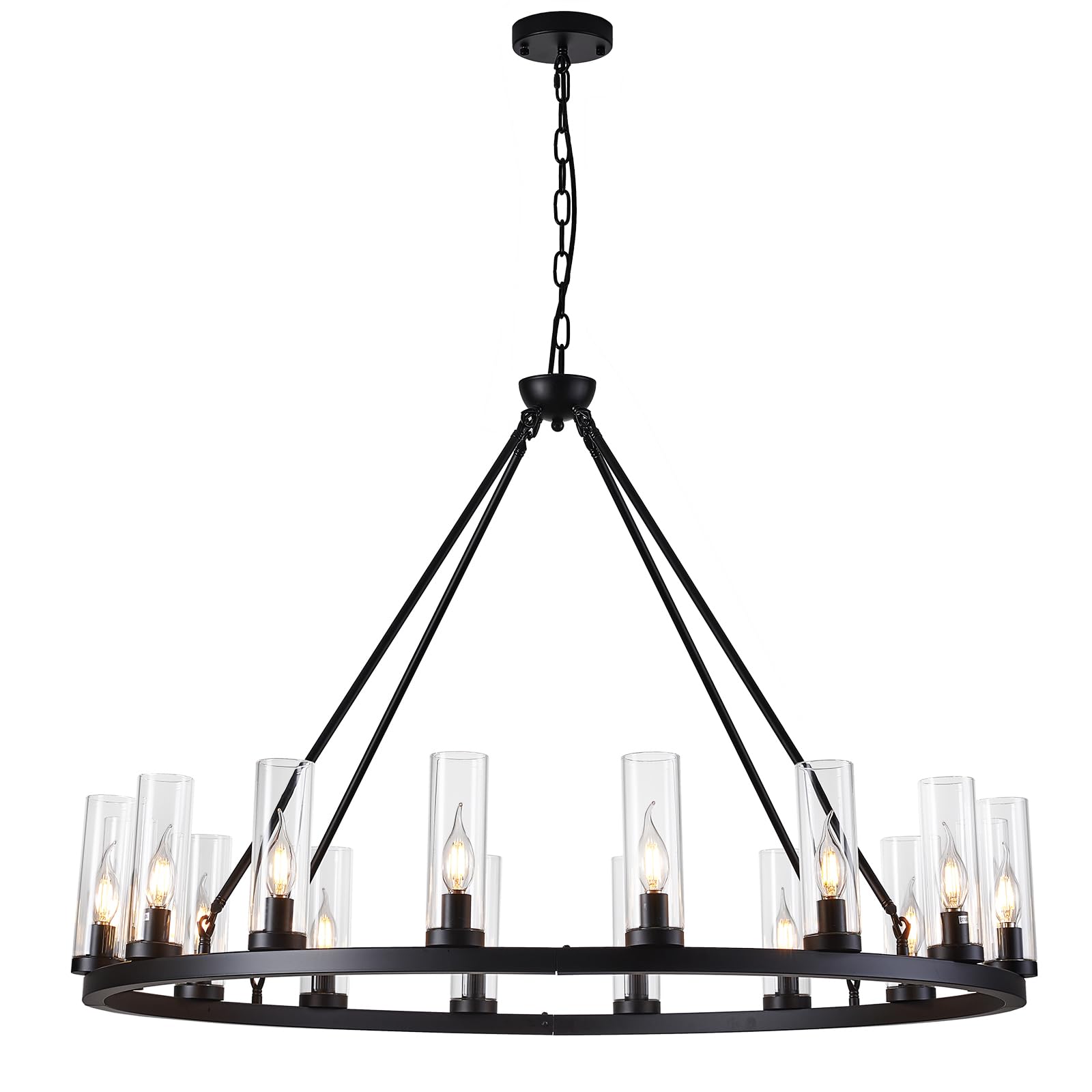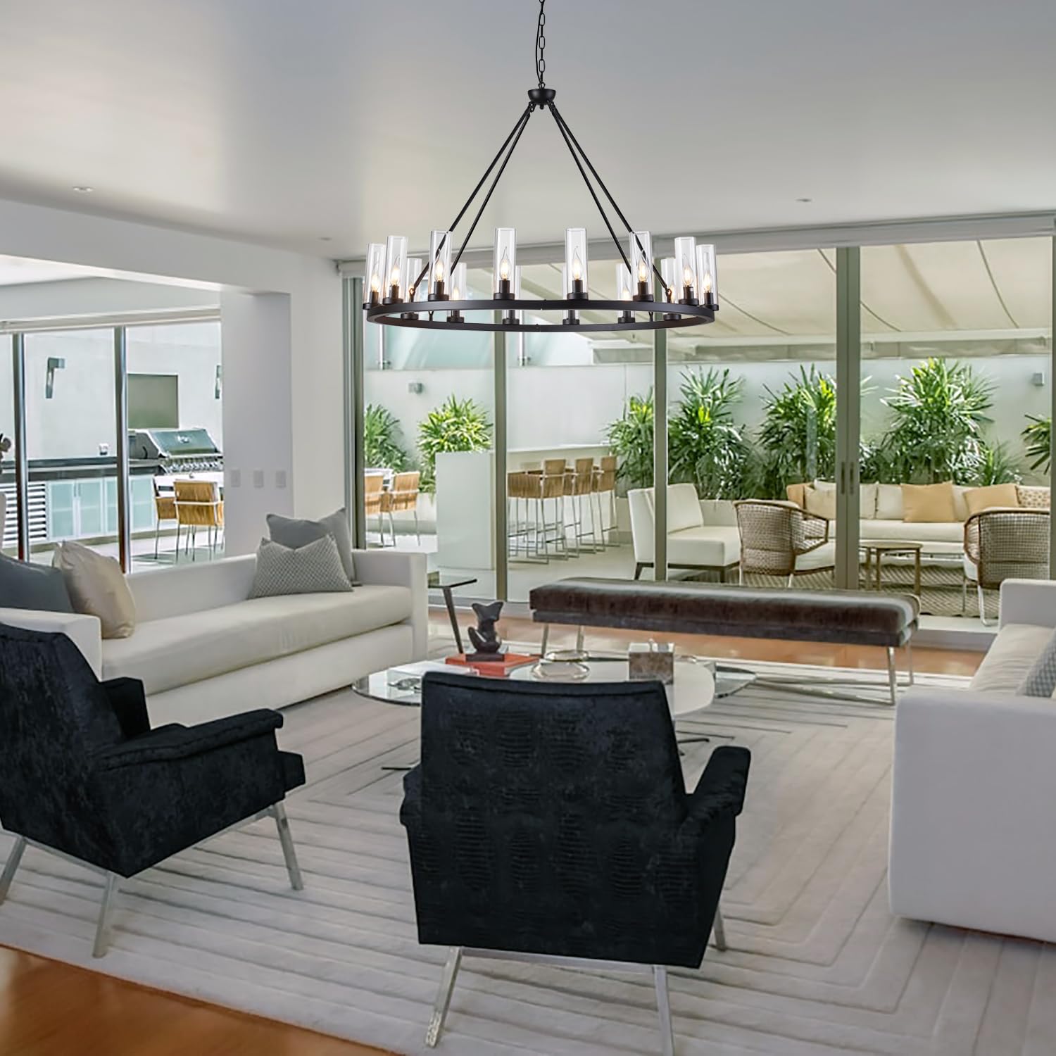 Uboxin Rustic Industrial Farmhouse 16-Light Chandelier Black Metal Wheel Round Pendant Ceiling Light Fixture with Clear Glass Shades Vintage Lighting for Dining Room Living Room Modern Home Lighting