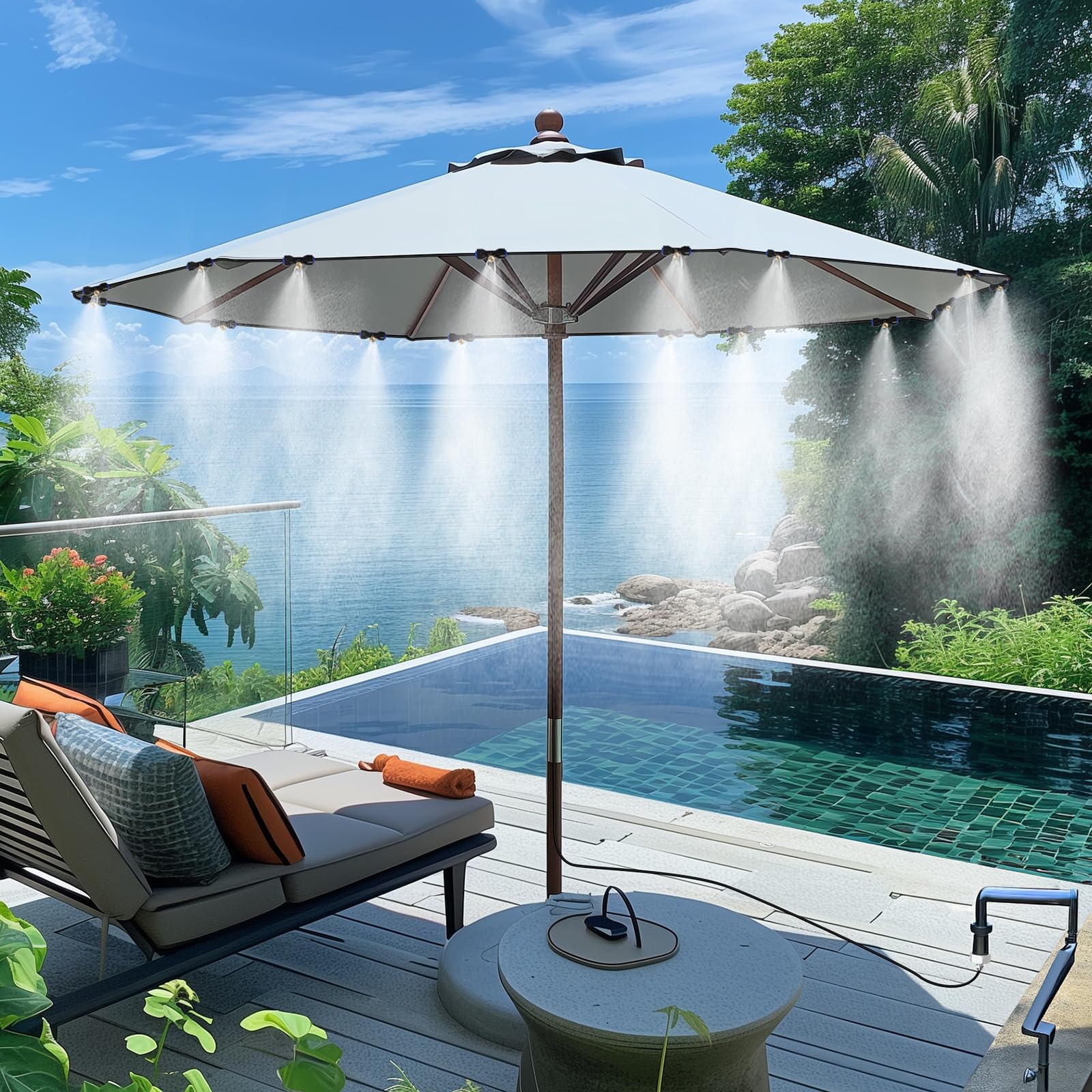 Efficient Cooling: Water mister system creates a mist of fine water droplets, reducing the surrounding temperature by up to 20℃ or 68℉, providing a cool and comfortable outdoor environment. The water mister is also a good helper for outdoor water play, which can be used in trampoline water parks, sun umbrellas, swimming pools, kennel and other outdoor water play places.
