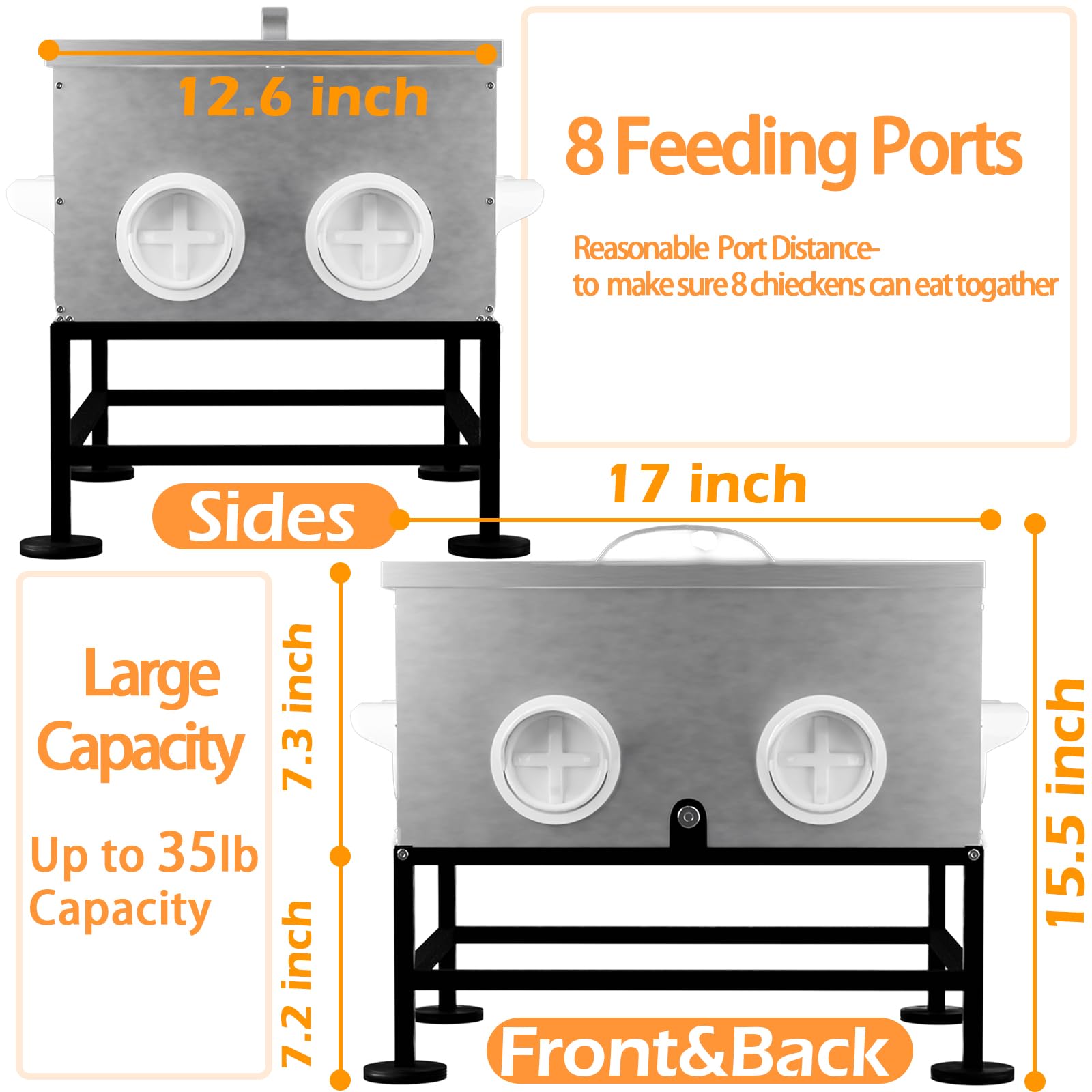 [ 8 Feeding Ports Design ] chicken feeder has 8 feeding ports and can feed 8 chickens at the same time.