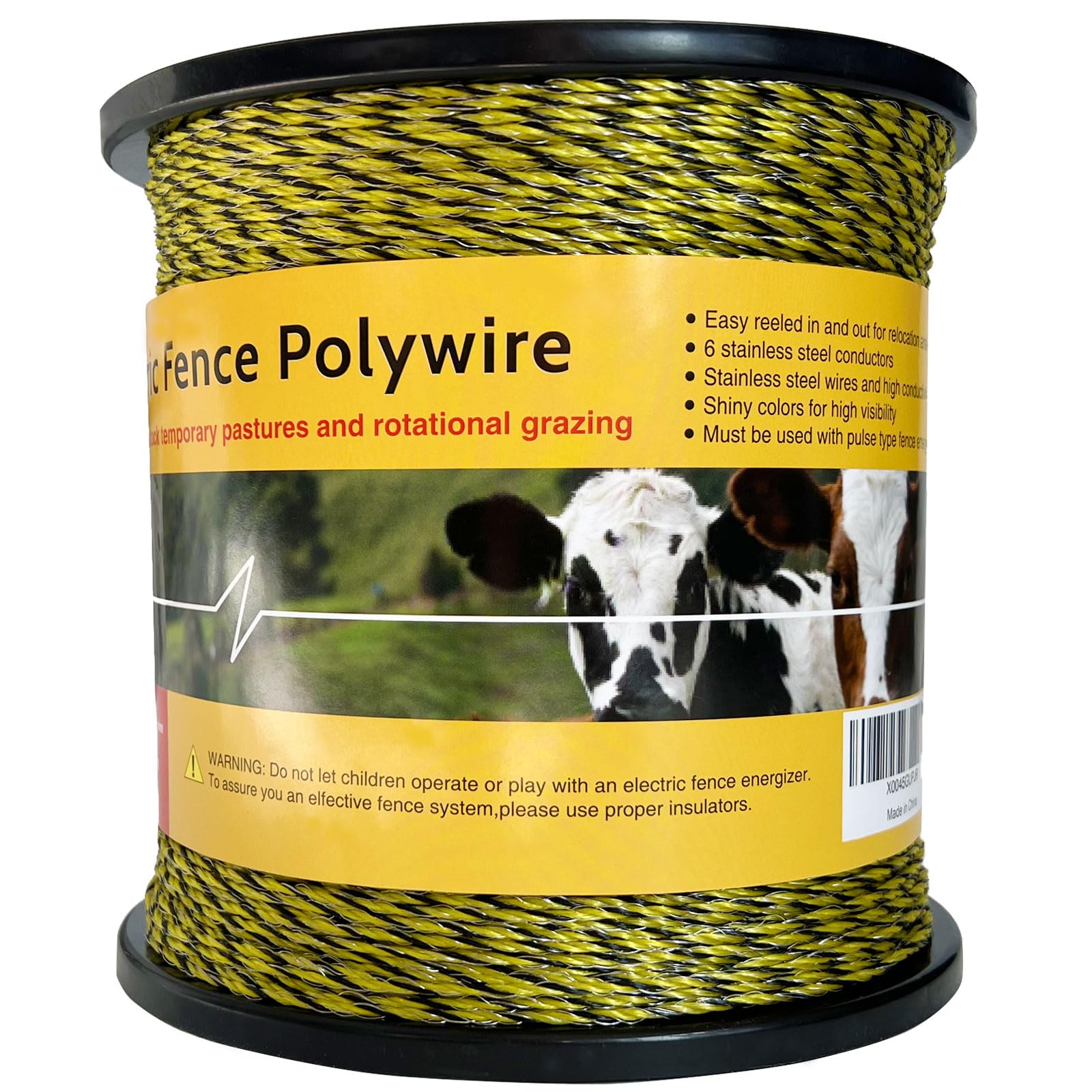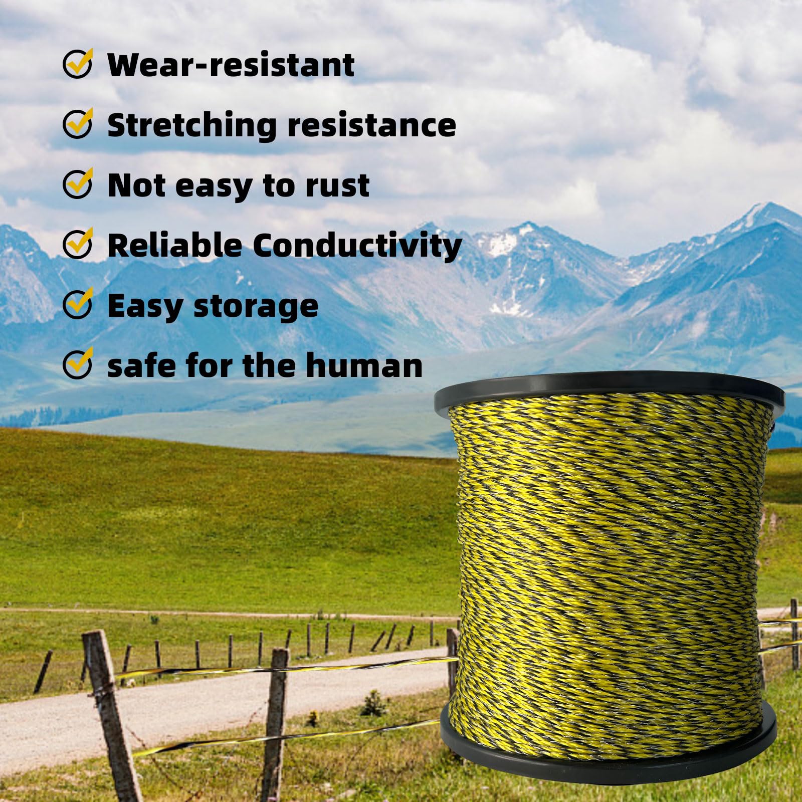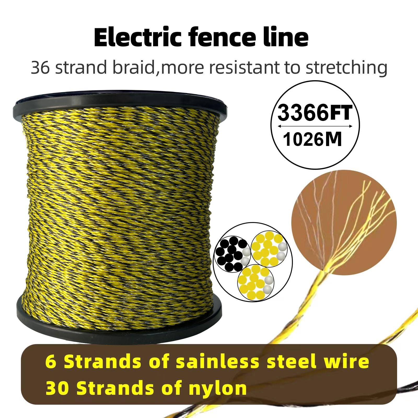 Upgraded Electric Fence Polywire 3366 Feet 1026 Meters, 6 Stainless Steel Strands for Reliable Conductivity and Rust Resistance, Easy to Install,Portable Electric Fencing,Yellow and Black Color