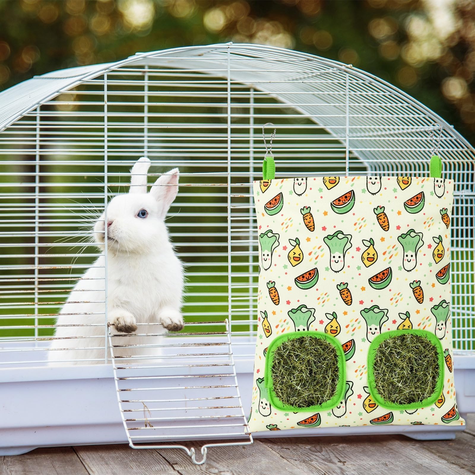 UPINS 2 Pack Guinea Pig Hay Feeder,Rabbit Hay Bag Hanging Hay Holder for Guinea Pig Cage Hay Feeder for Bunny Rabbits Chinchillas Hamsters Small Pets and Animals
