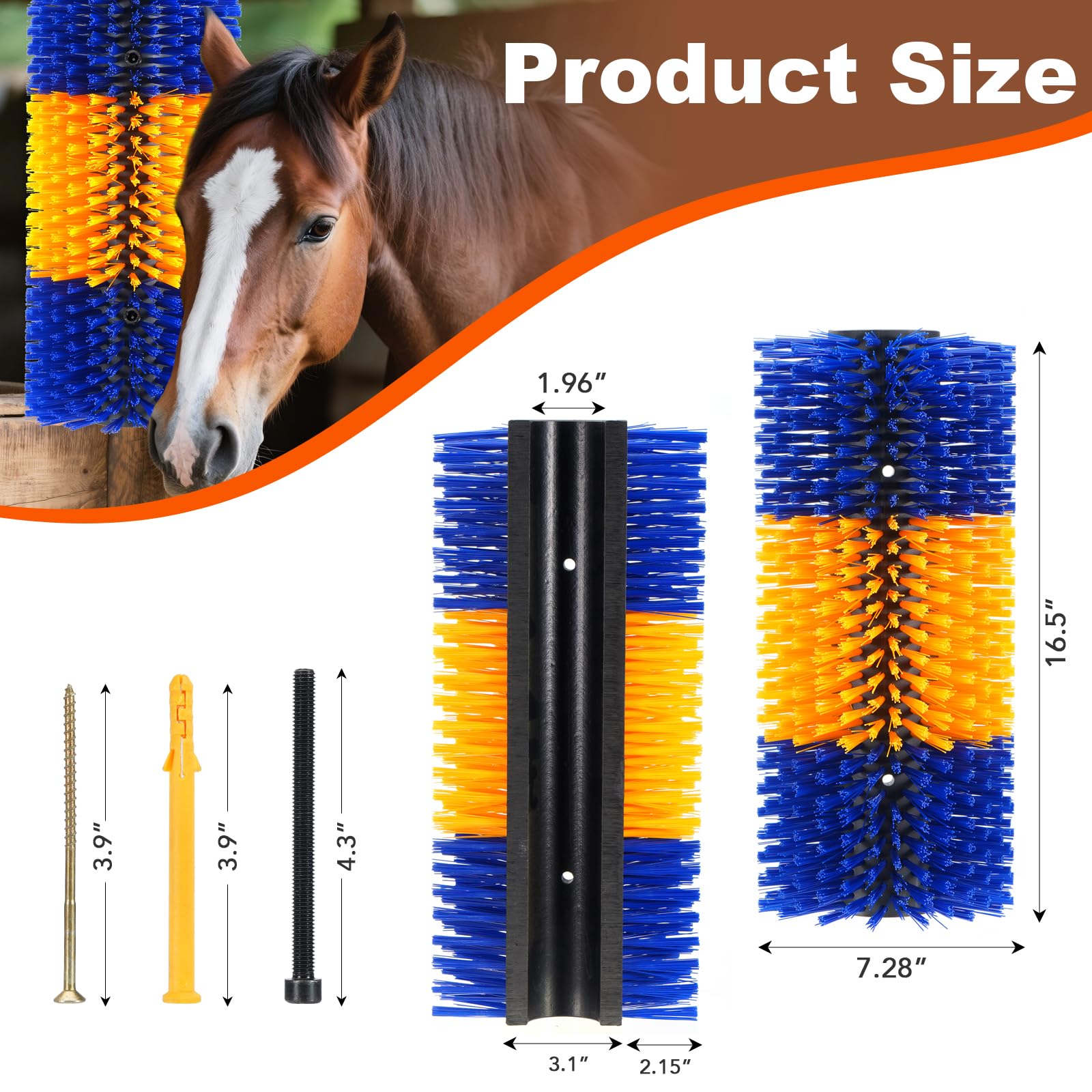 【Perfect for Livestock Comfort】-Designed for cows, horses, goats, and cattle, this 17" x 7.9" brush helps relieve itchiness and keeps animals happy with its 2.24" bristles.
