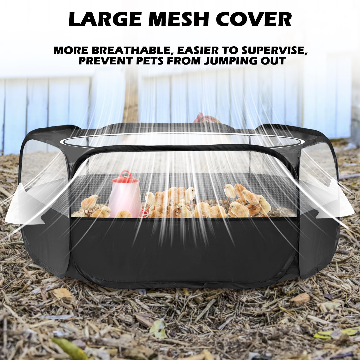 1.MULTI-PURPOSE: Our pet playpen is suitable for kittens, puppies, bunnies, chicks, hamsters, chinchillas, ferrets and other small animals. Not only can it be placed indoors as a place for small animals to play and rest, a brooder box for newly born pets, but also can be taken outdoors for them to sunbathe. The large space allows them to enjoy a cozy and spacious environment inside.