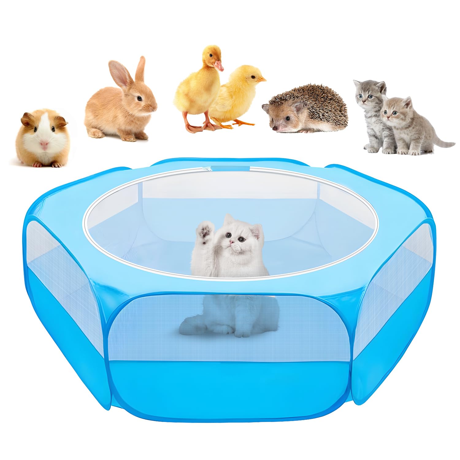 UWE Small Animal Playpen, Chicken Brooder Box with Cover Top, Portable Outdoor Exercise Pet Cage Tent, Waterproof Breathable Pet playpen Indoor for Chick Ktiien Bunny Hamster Guinea Pig, Blue
