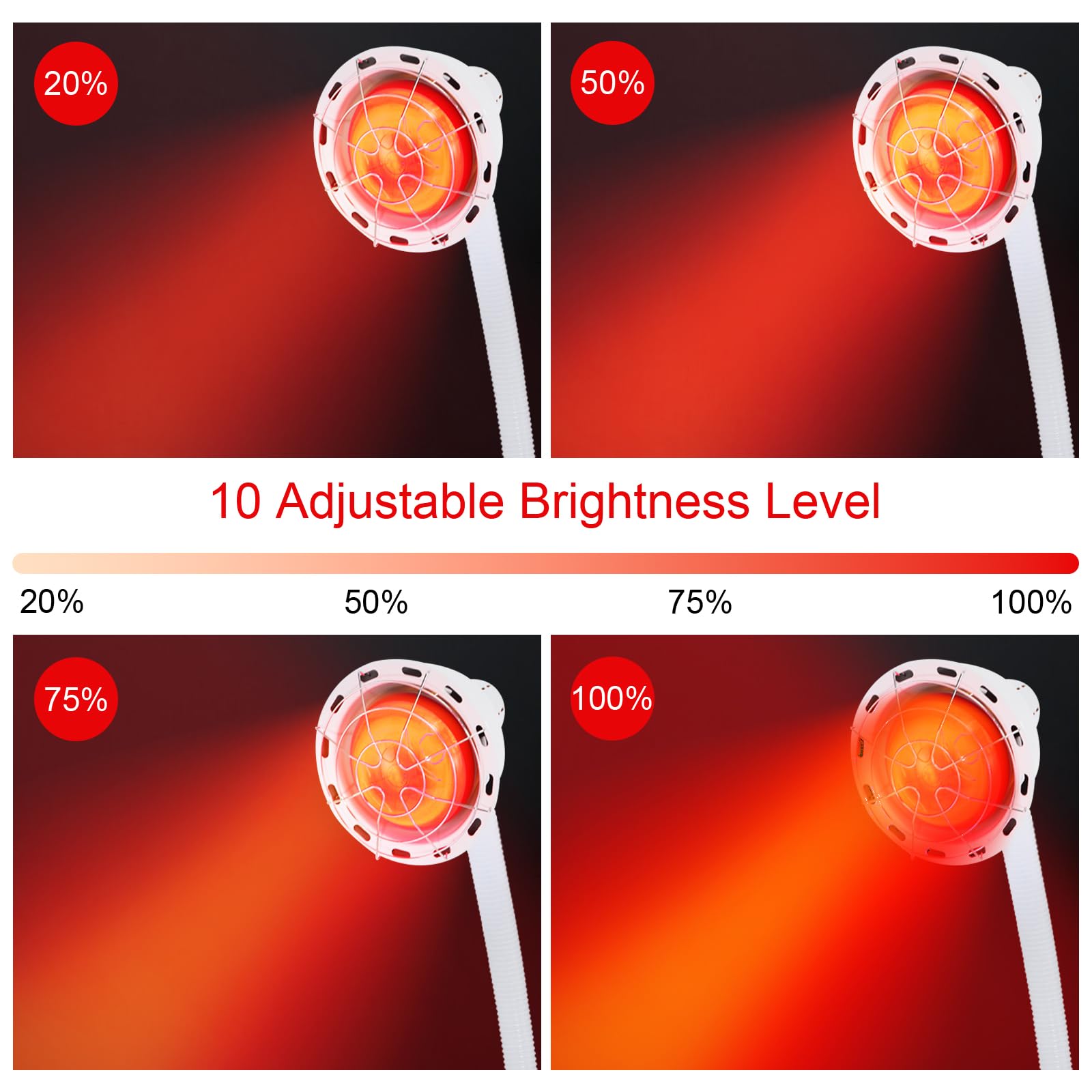 【High-Power Red Therapy Heat Lamp】: Designed with 360° heat dissipation holes and high-color rendering light bulbs, resistant high temperatures and strong penetration. longer lifespan and provides farther concentrated light to achieve large-area irradiation. 275w red light beads allow the skin to absorb and tighten more effectively, while also reaching the bone tissue, reducing joint inflammation and relieving pain, promoting muscle recovery, more safer used.