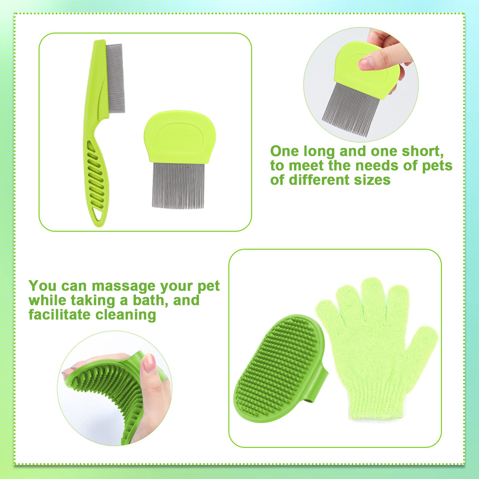 VCZONE 8 Pcs Small Animal Grooming Kit, Pink with Pet Nail Clipper and File, Flea Comb, Pet Shampoo Bath Brush, Pet Shedding Slicker Brush, Bath Massage Glove, Cleaning Comb (Green)