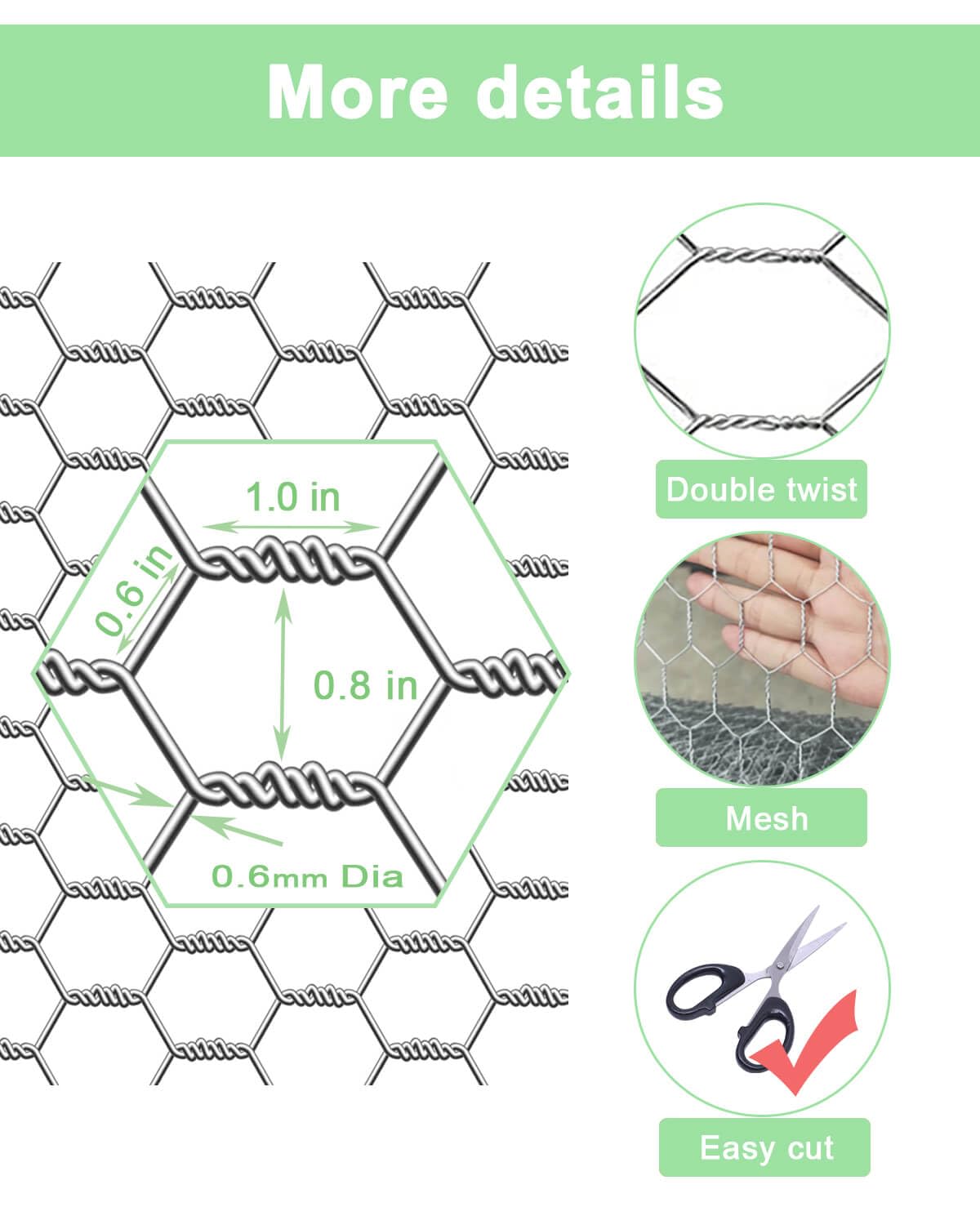 - 【0.8 Inch Fine Mesh】Hexagonal mesh grid keeps even chicks and small critters out. Ideal for fencing, pet enclosures, and protective barriers.