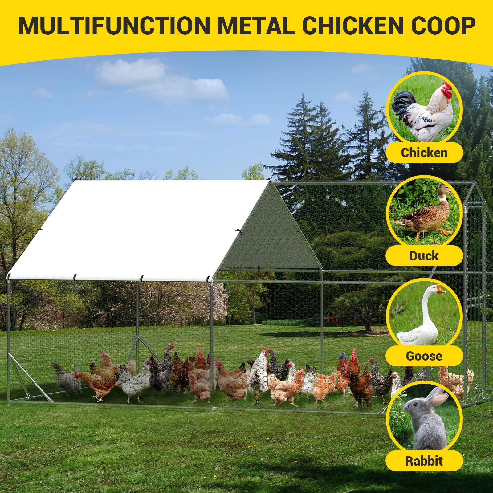 [MULTIFUNCTIONAL CAGE FOR A VARIETY OF ANIMALS] Our walk-in chicken coop is not just a home for hens; it's a versatile living space for a wide range of animals. From ducks and rabbits to geese, dogs, cats, and quail, this spacious metal coop accommodates all your pets comfortably. Its stability and adaptability provide a secure environment, allowing your animals to play and rest together safely. Embrace the versatility of our multifunctional cage and create a nurturing habitat that meets the div
