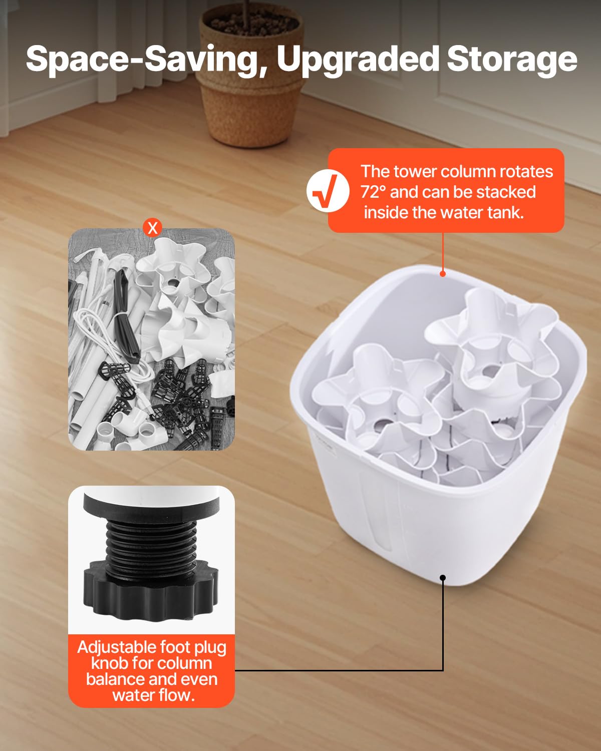Space-Saving, Efficient Growing: Featuring a 6-tier vertical design with 30 planting pods, this space-saving hydroponic growing system measures just 16.93 x 16.93 x 39.37 inches. Ideal for kitchens, balconies, and small apartments, it allows you to grow plants efficiently in compact spaces and enjoy a green lifestyle.