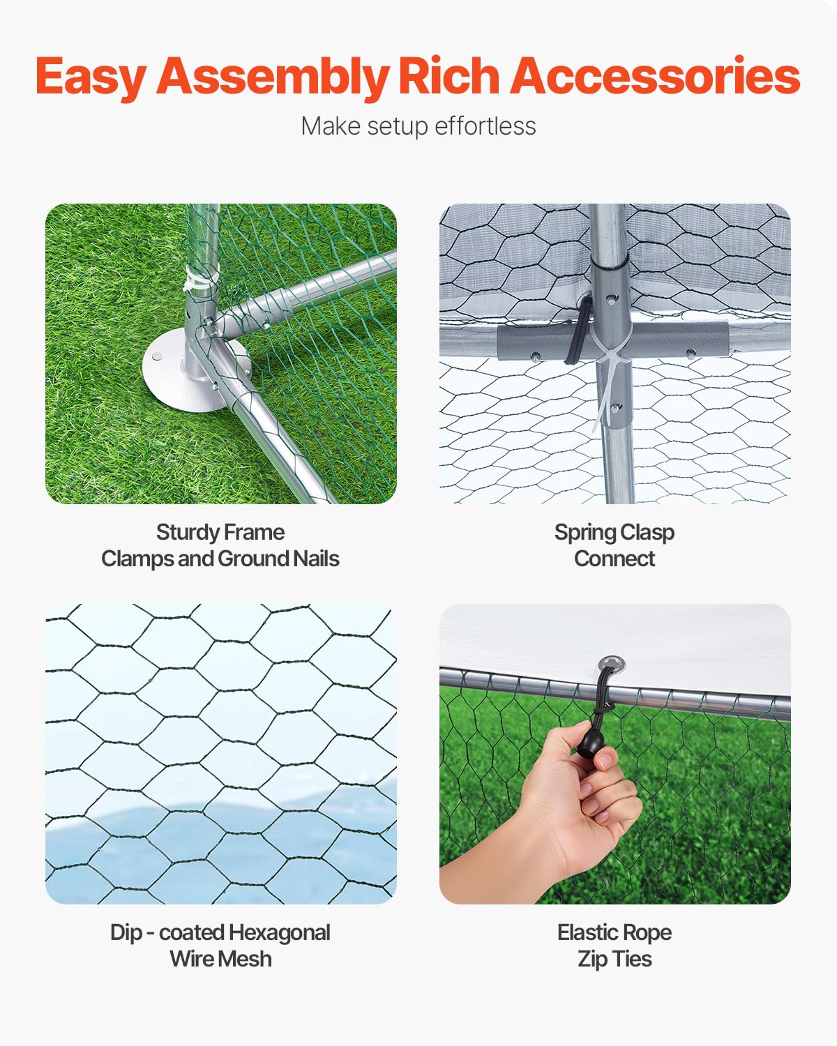 Large Metal Chicken Coop with Cover: If you're a pet lover, you know how crucial it is to give your furry friends a secure and comfortable shelter. That's why VEVOR's chicken coop is the perfect solution! Built with a sturdy metal frame and a durable sunproof cover tarp, this coop is designed to last.