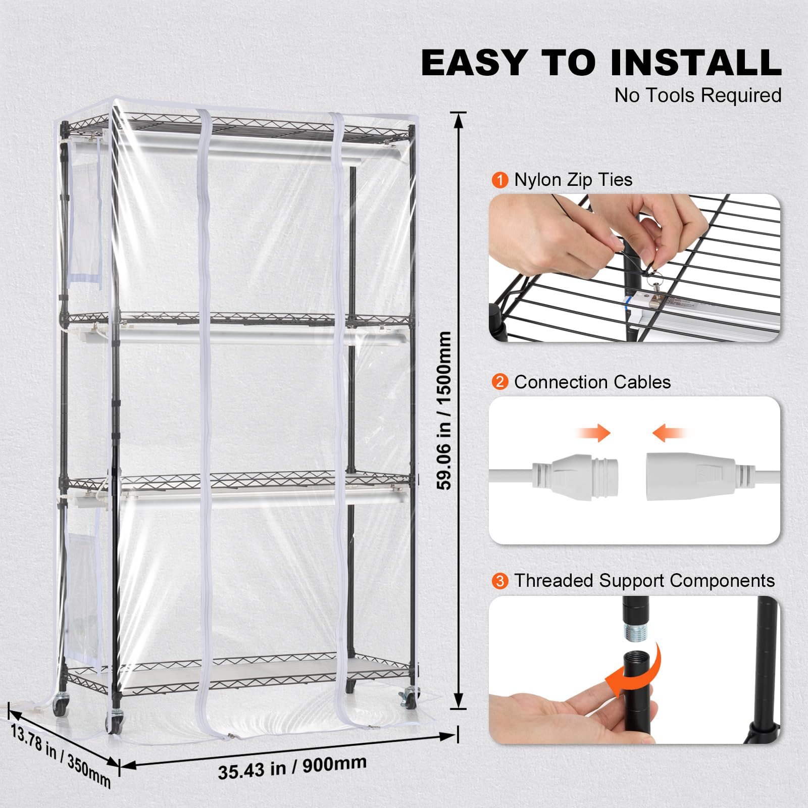 Easy Assembly: The plant grow shelf with cover features optimized connection components with a unique cylindrical design, simplifying the assembly process. Clear instructions guide you through each step, making it easy to set up and adjust the rack on your own.