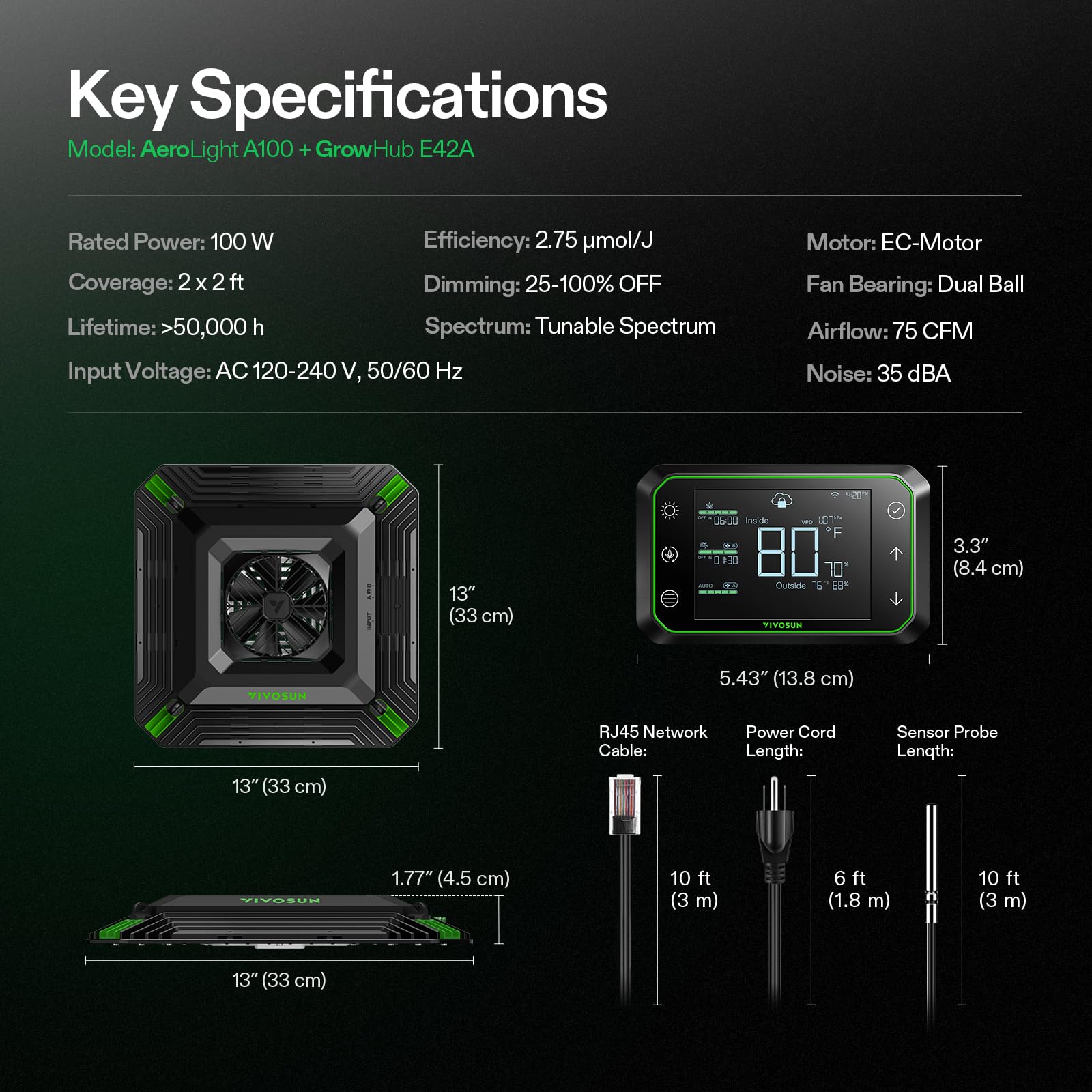 • Smart Control and Programming: The AeroLight SE is compatible with the Vivosun GrowHub Controller and App; You can also automate and customize day/night schedules to simulate natural environments; This package does not include this controller, which needs to be purchased separately
