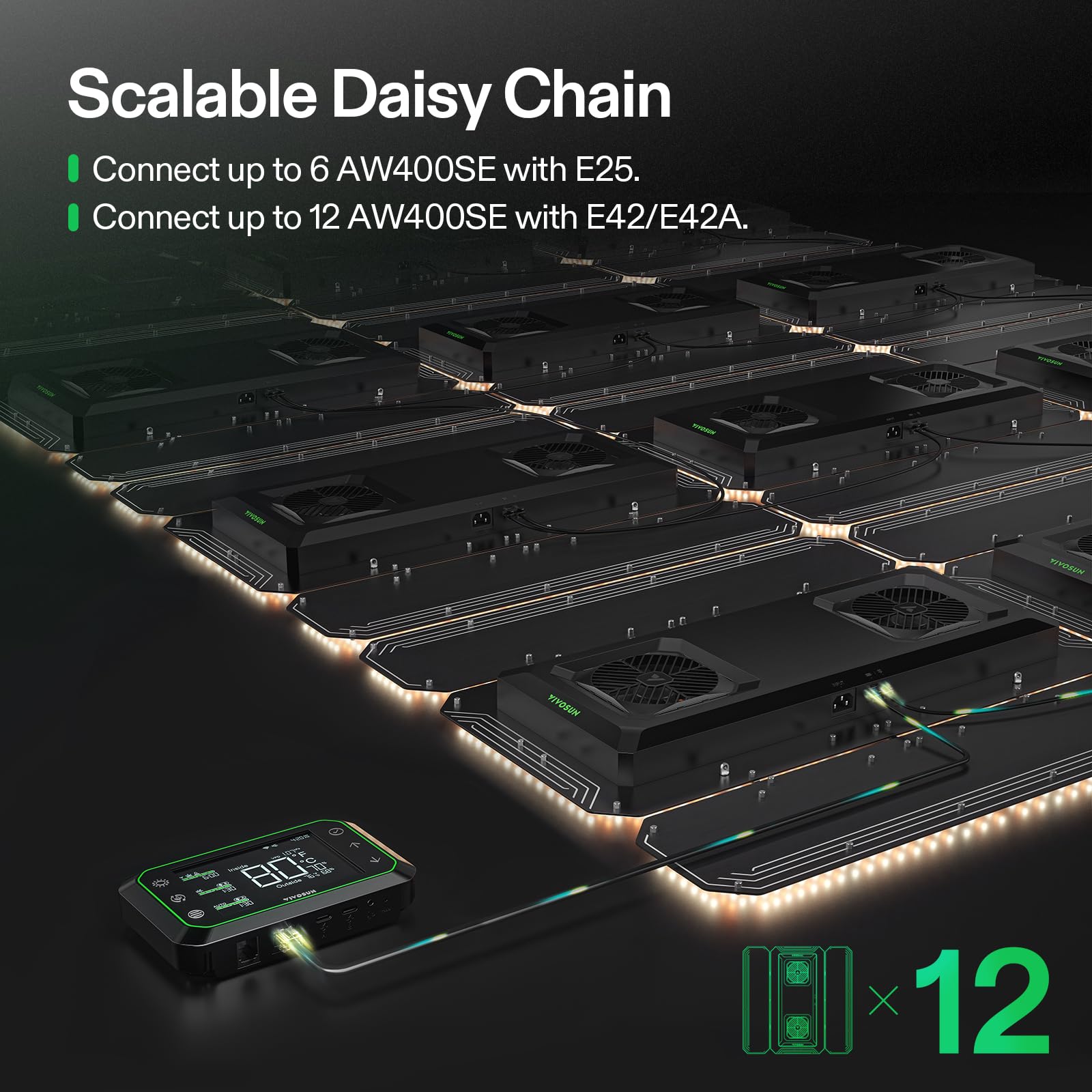 Integrated Circulation Fan: The centrally located fan optimizes airflow, reaching areas you might easily overlook; It enhances direct air entry into the canopy, balancing temperature and humidity; To unlock additional features, the fan must be used with the Vivosun Growhub Controller (E42, E42A, or E25), available for separate purchase