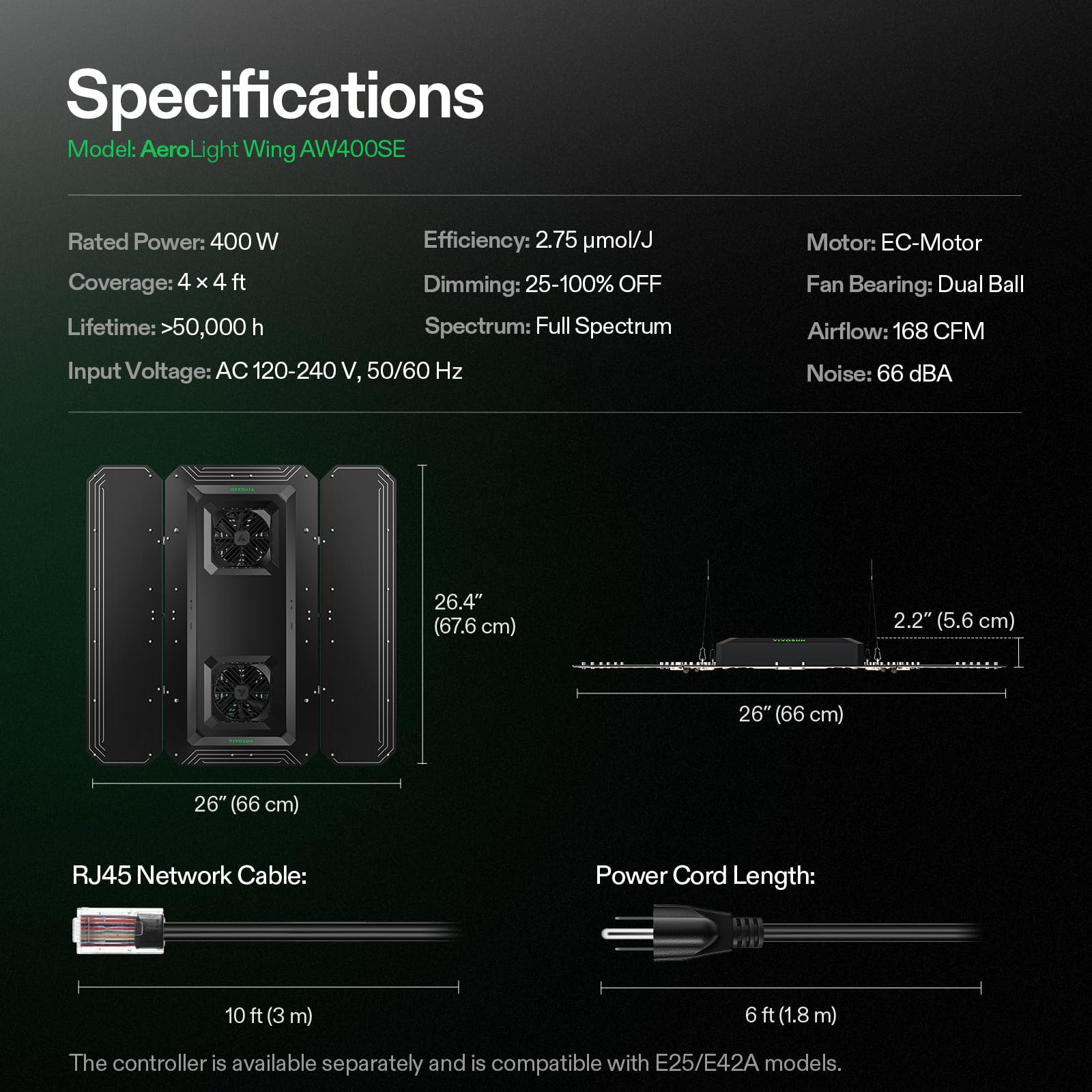 VIVOSUN AeroLight Wing AW400SE, LED Grow Light 400W with Integrated Circulation Fan, App Compatible, Used with Growhub Controller E42A/E25 to Achieve More Functions for 4x4/5x5 Grow Tent