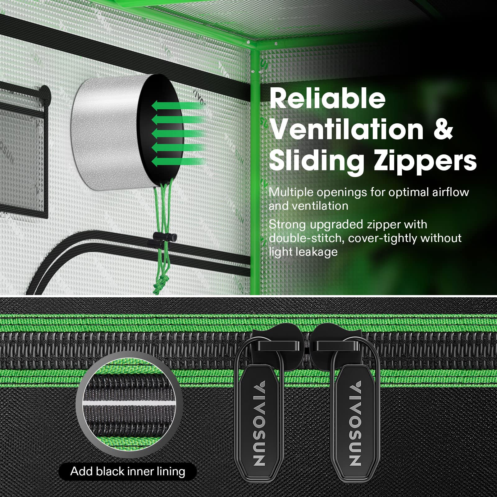 Promote Plant Growth: Vivosun grow tents are equipped with a lined zipper double stitched to prevent light leaks; made of 100% reflective mylar to ensure plants fully absorb lights’ nutrients and energy