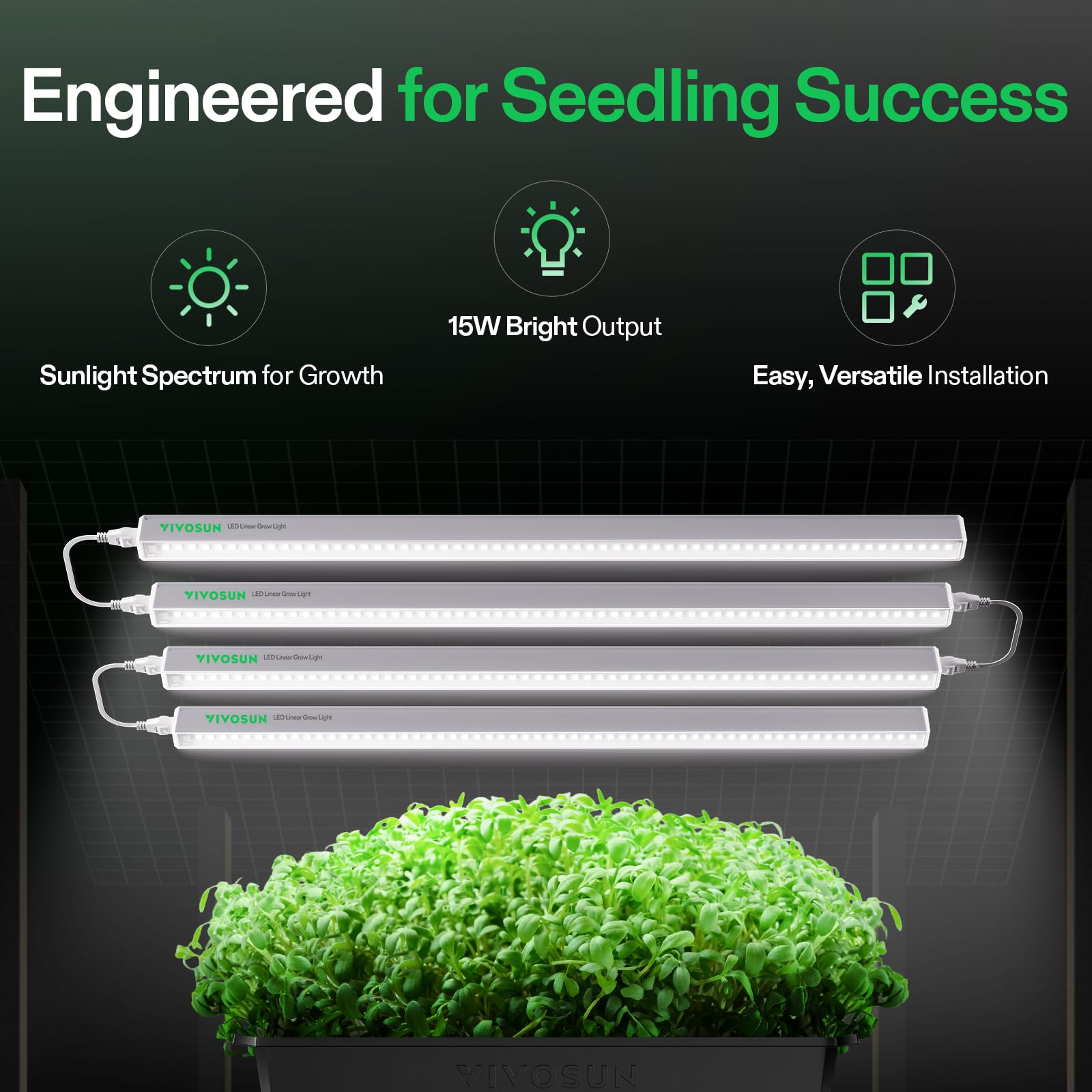 • Ideal for Seedling Growth: These full-spectrum grow lights provide sun-like care, helping seedlings grow faster and stronger; Perfect for supplementing lighting for seedlings, vegetables, or flowers in grow tents, greenhouses, or any indoor growing space