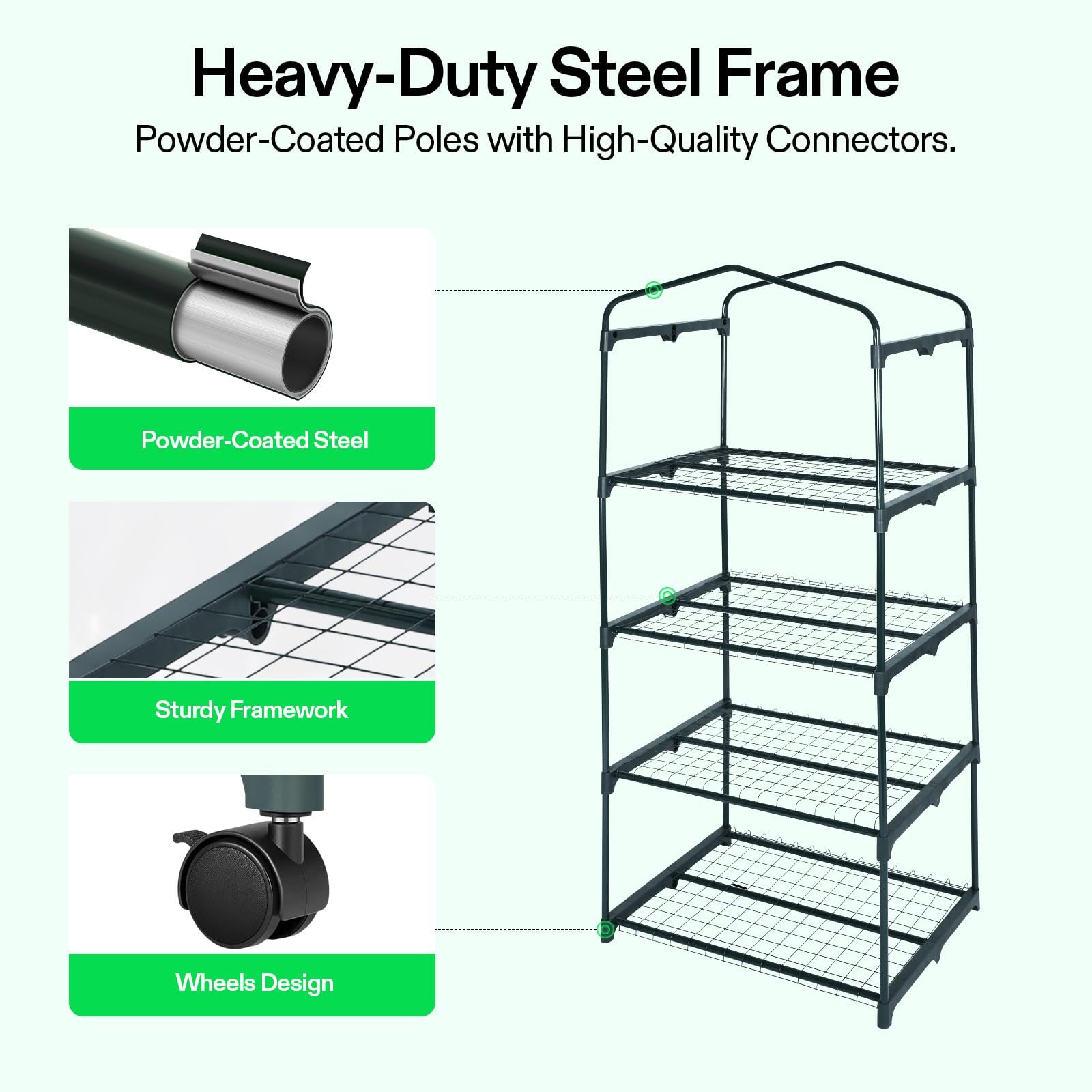 Lightweight and Space Saving: Comes with 4 deep shelves for seedling starting trays or pots, saving space on your balcony and giving you the convenience to start seedlings indoors before moving them outdoors