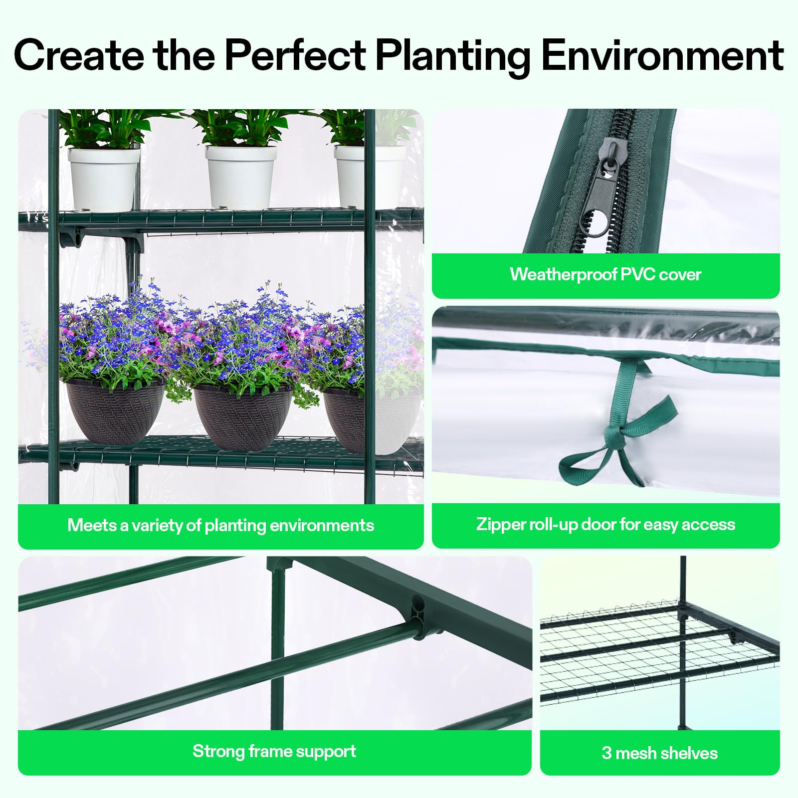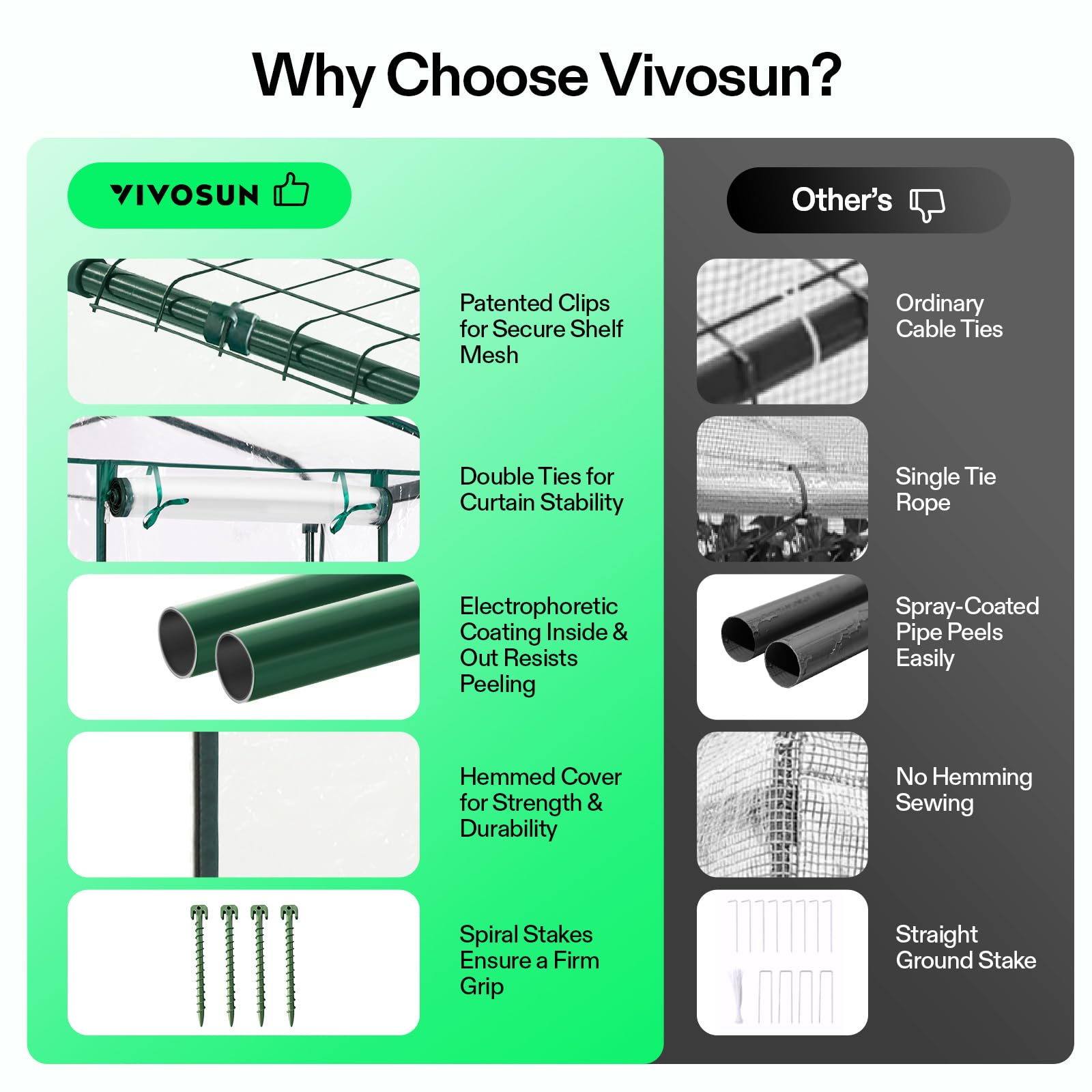 Sturdy & Durable Framework: Supported by a powder-coated heavy-duty steel frame, the green house is very sturdy and firm; Bury the base into ground helps you strengthen its stability and safety