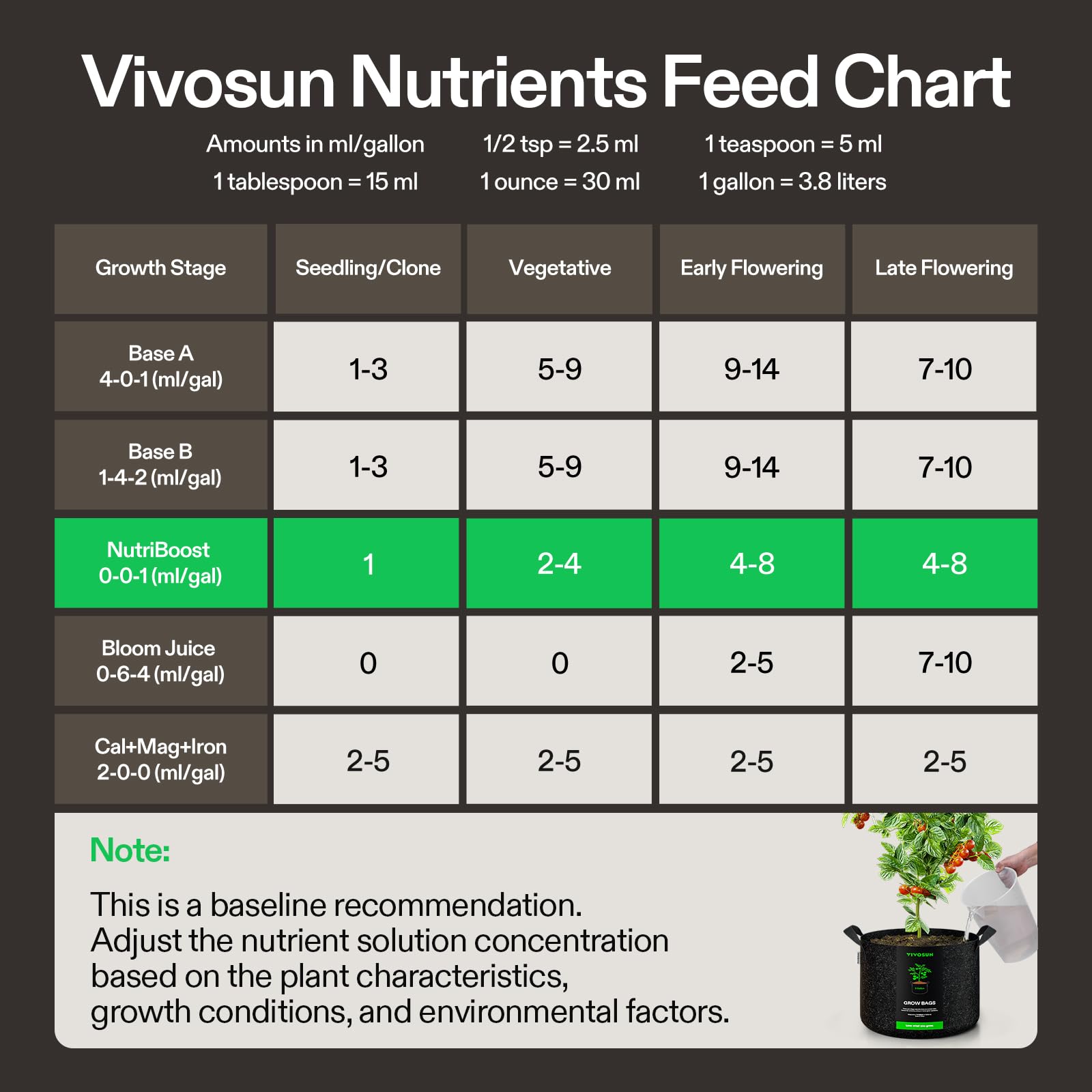 • The Perfect Combination: Vivosun nutrients base A & B are two-part, concentrated, holistic formulas that provide complete macro and micronutrients for plant growth; They can be used from the vegetative stage to the end of flowering