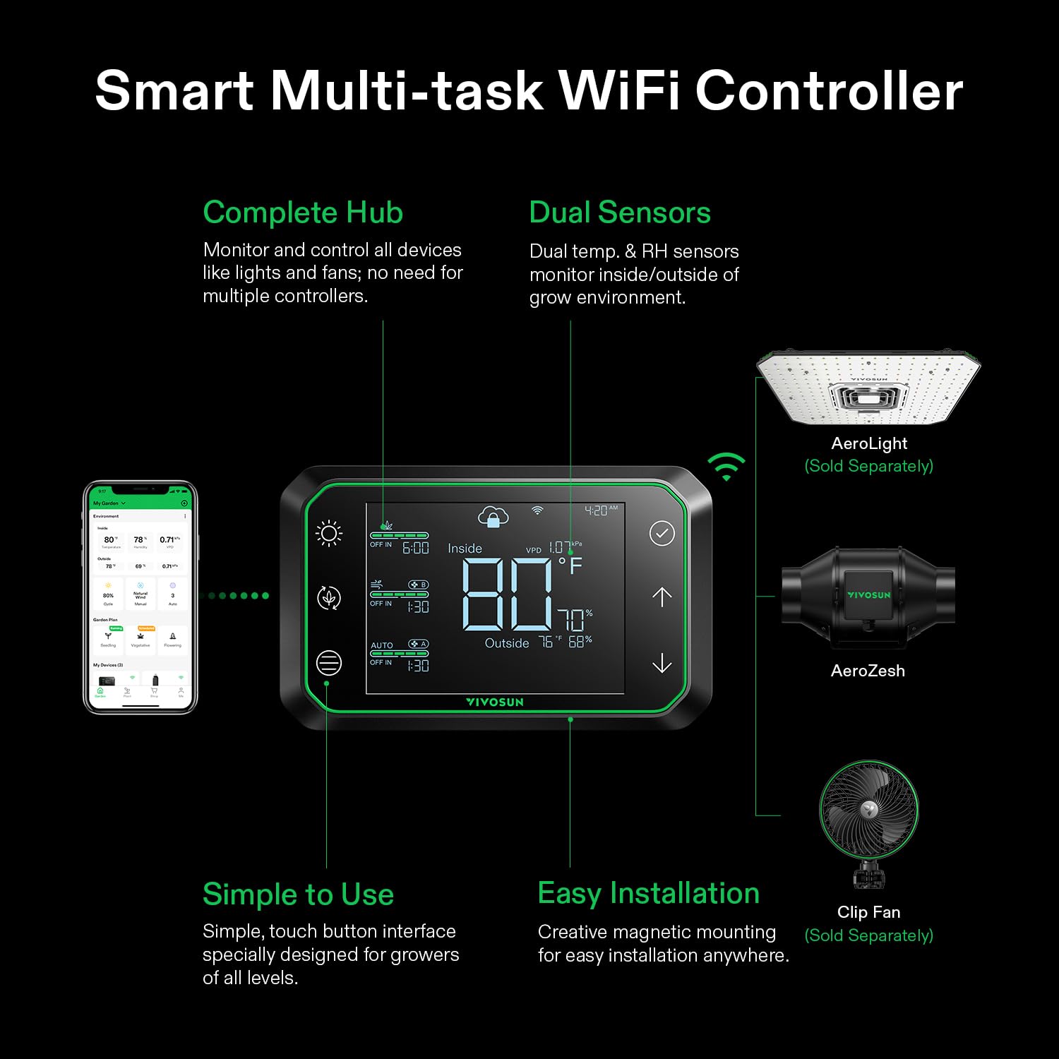 Fully Automated Environmental Monitoring: With a built-in temp and humidity gauge and one probe, the GrowHub Controller E42A monitors changes in both the internal and external environment and VPD; As it’s App controllable and WiFi-enabled, you may examine this data and set up your equipment through the App anywhere, anytime