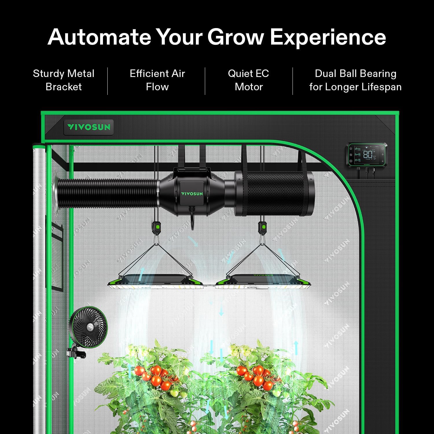Energy-Saving & Low-Noise Fan: The fan boasts powerful performance with airflow at 195 CFM to create optimal ventilation for your grow space; Controlled by PWM, fully adjustable and more energy-efficient; The mixed-flow design enables the fans to distribute air over greater distances; At only 28 dBA, the fan ventilates quietly