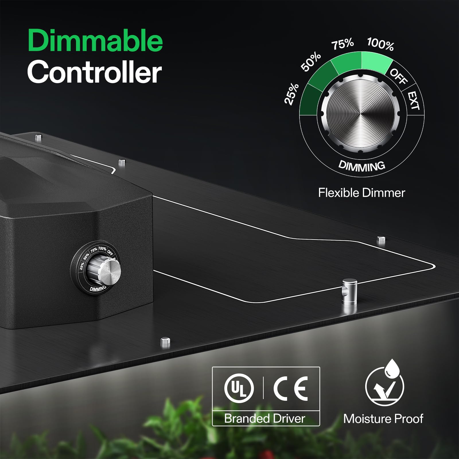 Convenient Dimmable Lights: This LED grow light has a dimming knob & ballast, so it adapts to different plant growth stages by adjusting its output from 25% to 100%