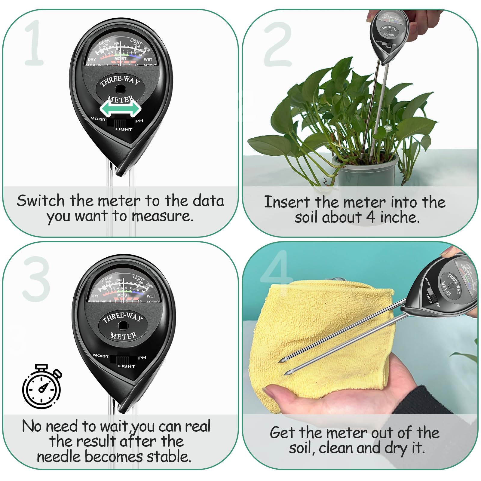 • Accurate Measurement : Our soil test kit use advanced sensing technology to ensure the accuracy and reliability of measurement results. You can rely on this plant moisture meter device to get accurate soil moisture, light and PH data to better care for your plants