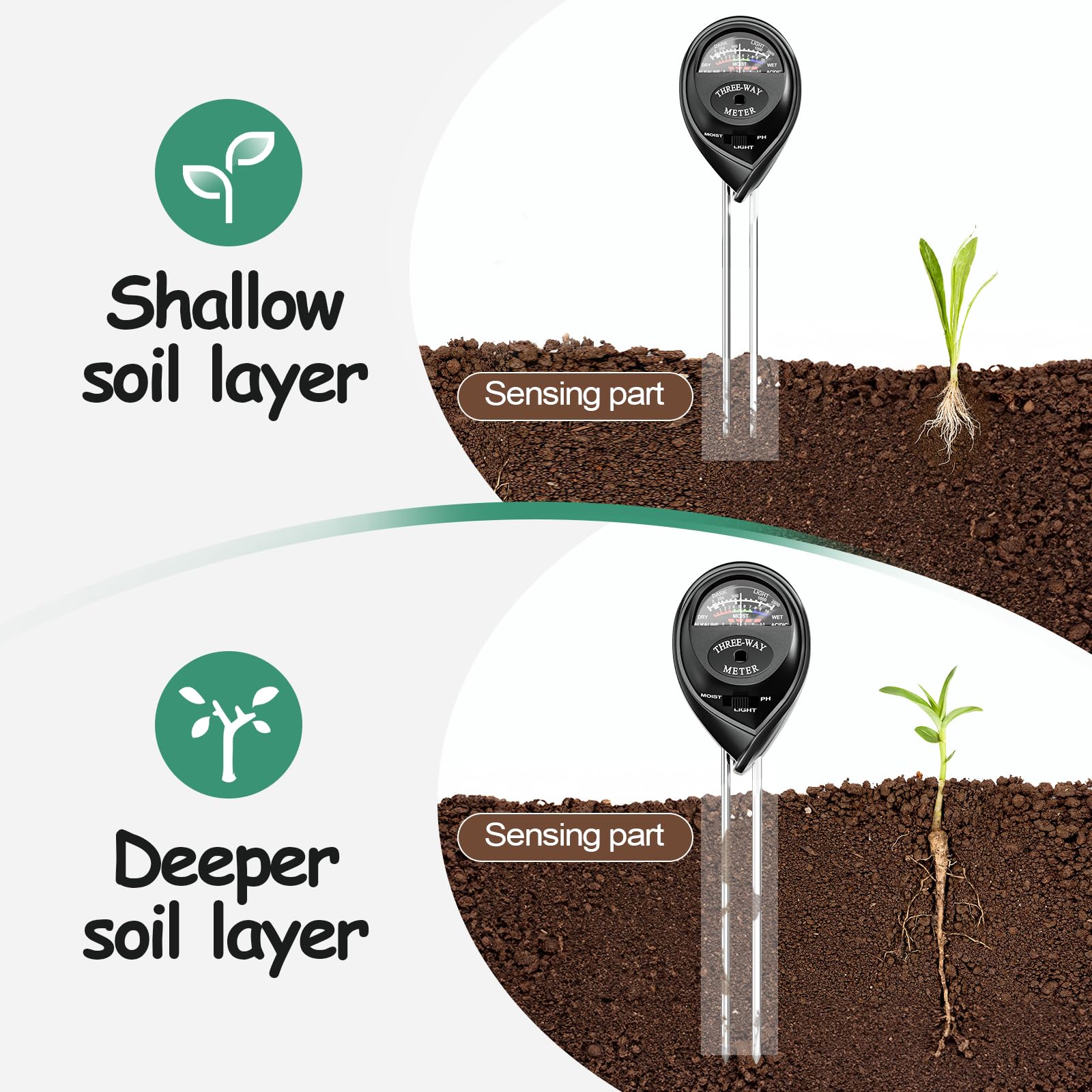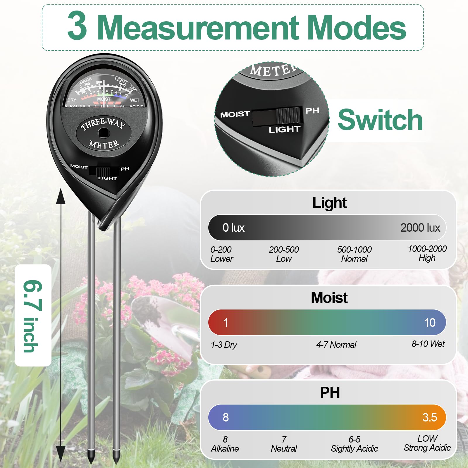 • 3-in-1 Soil Tester : This soil ph tester has a versatile design to measure soil moisture, light intensity and Ph. This means that you only need one device to access a variety of key information to help you better understand the environment in which your plants are growing
