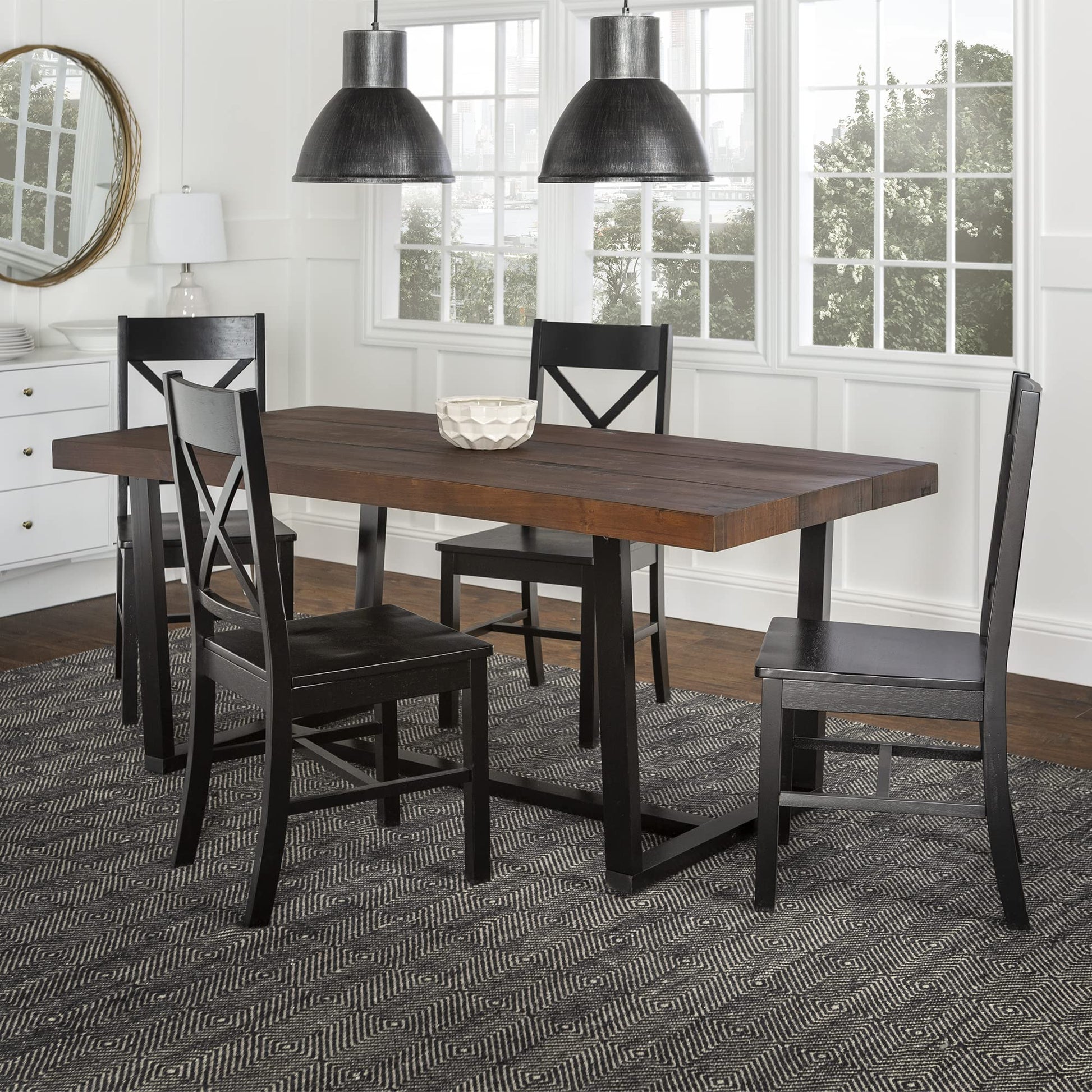 Walker Edison Barnes 5-Piece Rustic Metal and Wood Dining Table with X-Back Chairs Set of 5 Mahogany/Black