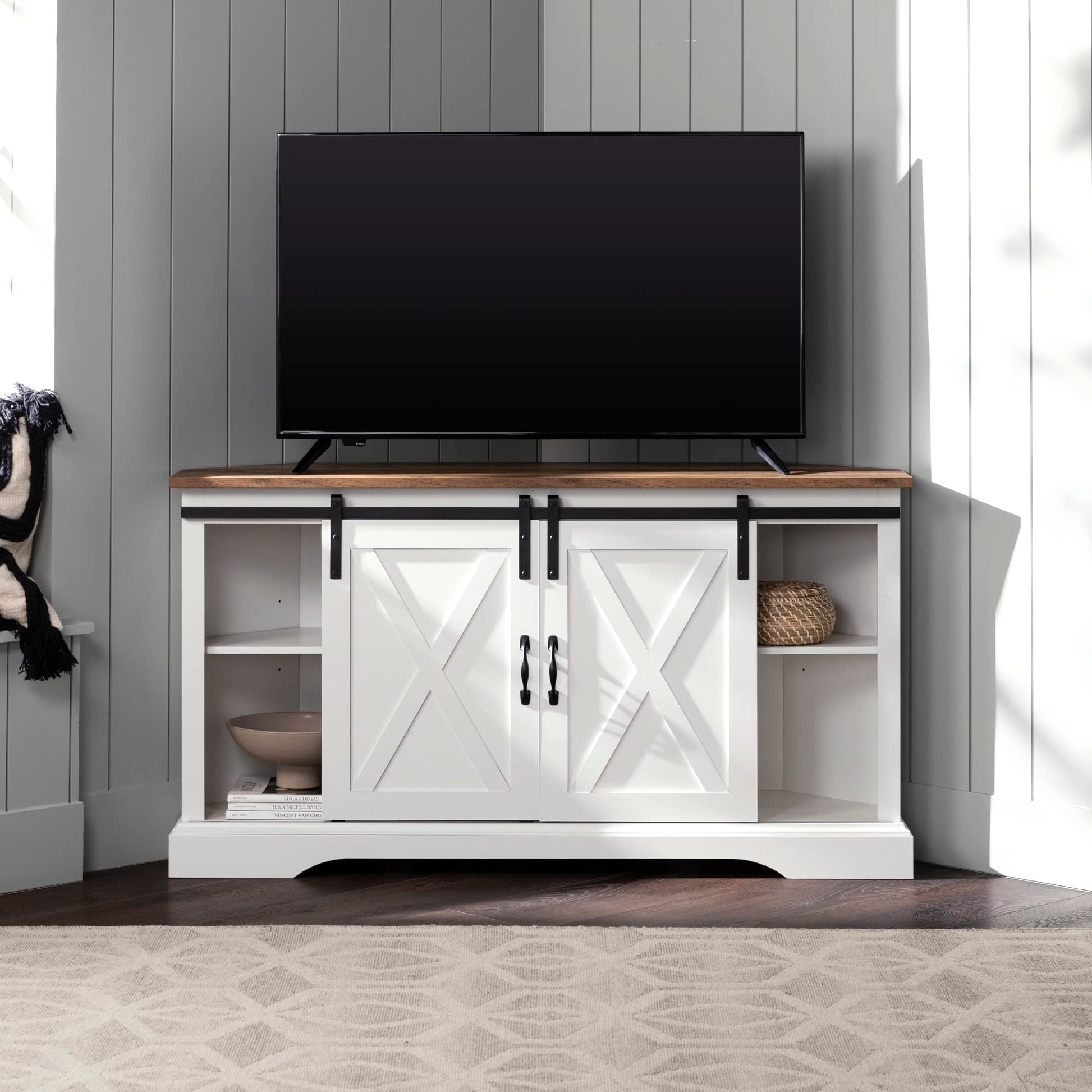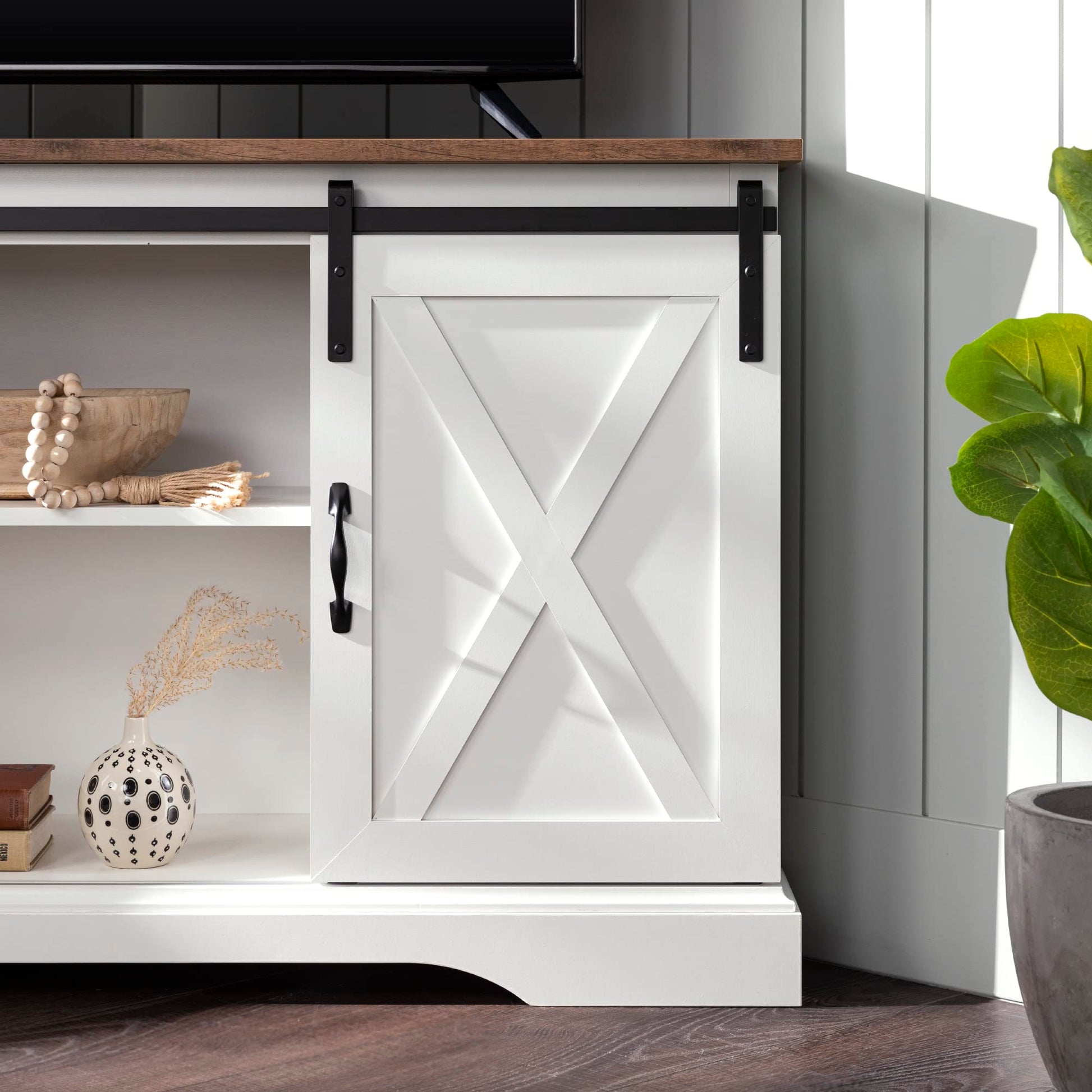 Walker Edison Everette Modern Farmhouse Double Sliding X Barn Door Stand for TVs up to 58 Inches, 52 Inch, Reclaimed Barnwood and Solid White
