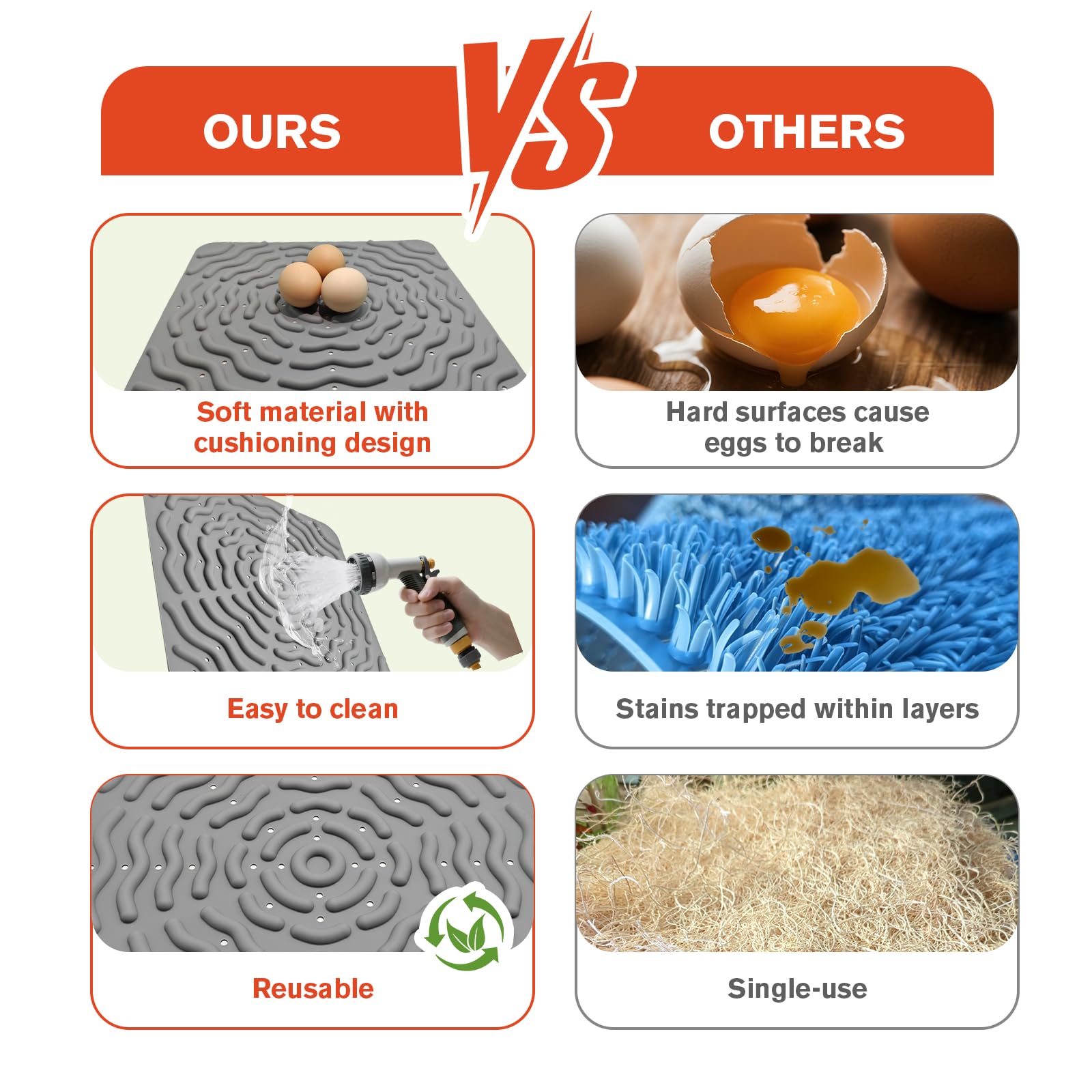 Ensure Your Hens Lay Eggs Securely: Nesting pads use new, soft, premium silicone. Featuring a thicker, taller, and denser bumper design, they absorb impact, increase friction, and minimize egg breakage.