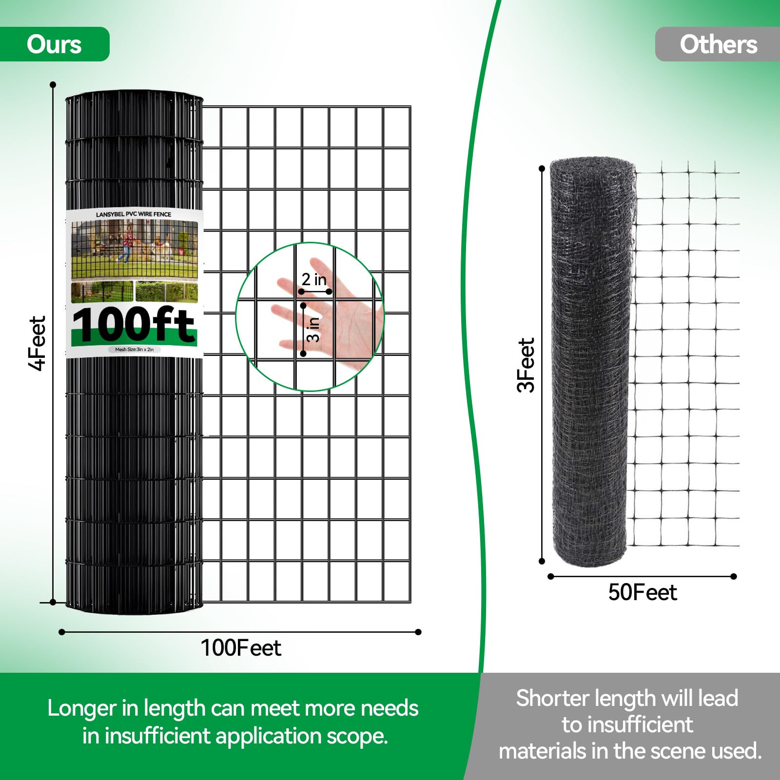 Welded Wire Fence, 100ft(L) x 4ft(H) PVC Anti-Rust Coated Wire Mesh, 2 Inch x 3 Inch 16GA Garden Edging Border, Roll Metal Animal Barrier for Yard Vegetable Plant Protection Poultry Netting