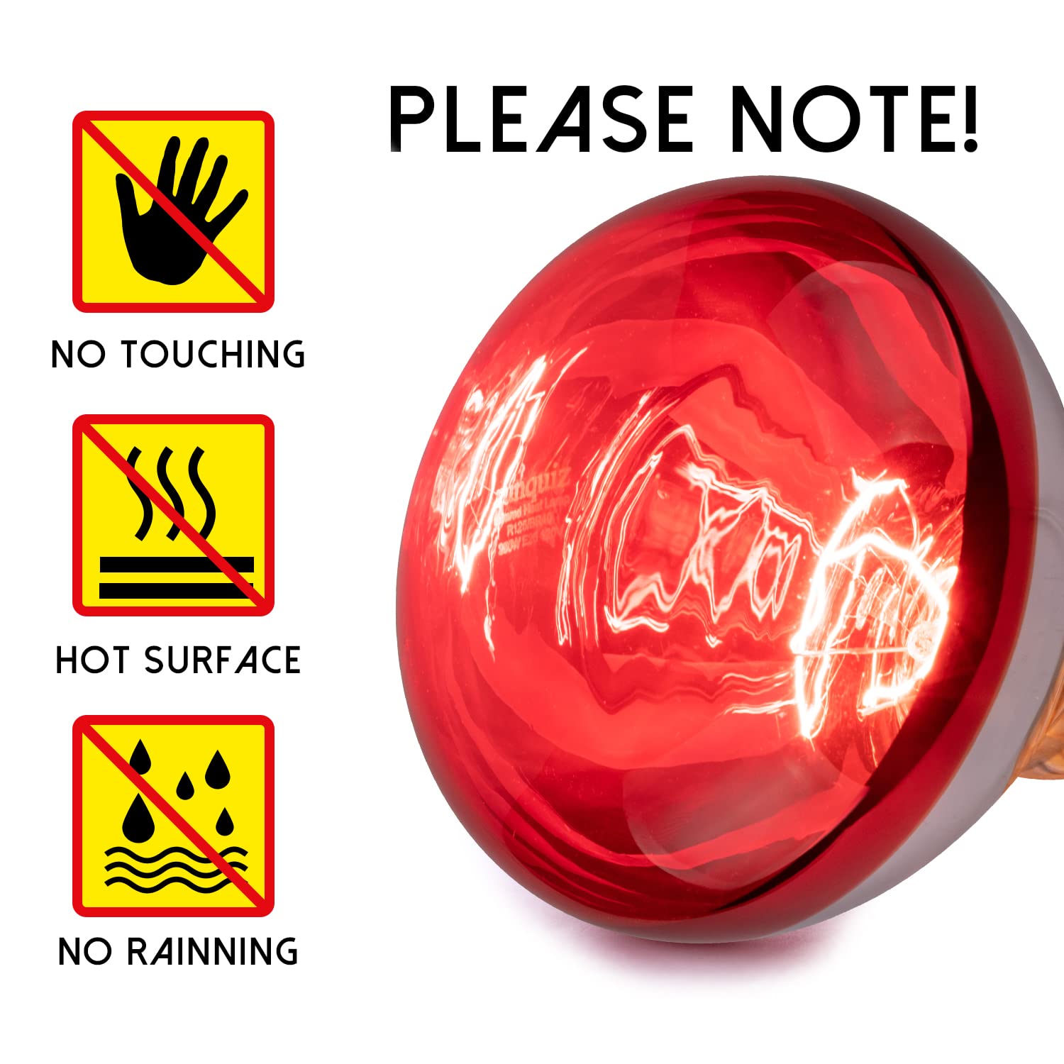 Safety Tip: Once the bulb is turned on, do not touch it as it can become very hot. Ensure that the heat lamp is kept at a safe distance from your pets, so they can stay warm and safe throughout the cold winter