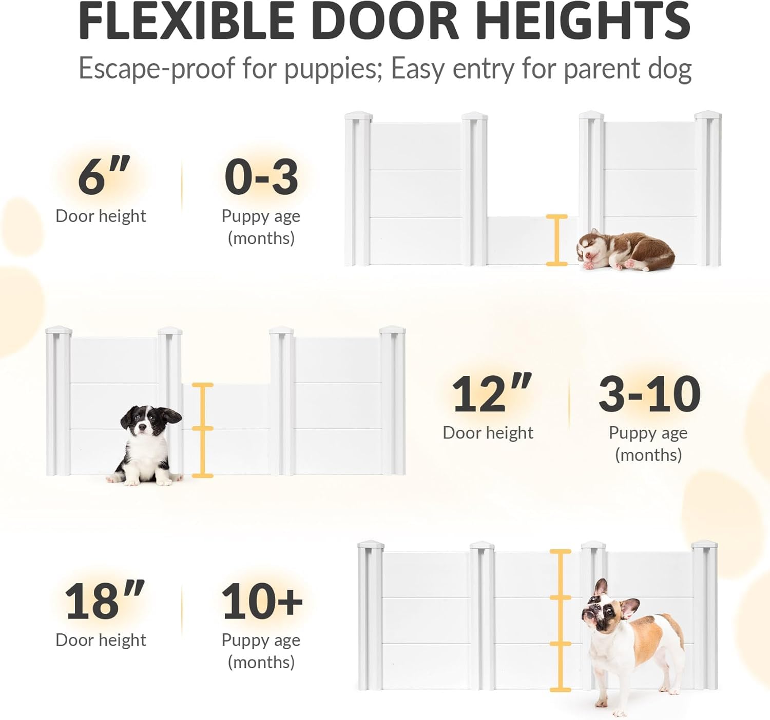 FLEXIBLE DOOR OPTIONS: Tailor your preferences with our multipurpose door options for the whelping pen. Choose the doorless design for enhanced security, perfect for recovering or pregnant dogs. Alternatively, opt for the convenient door feature, removing dividers to grant easy access for dogs to enter and exit as they please